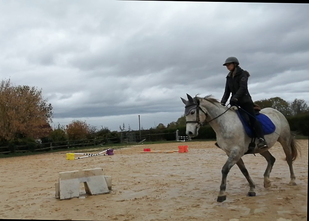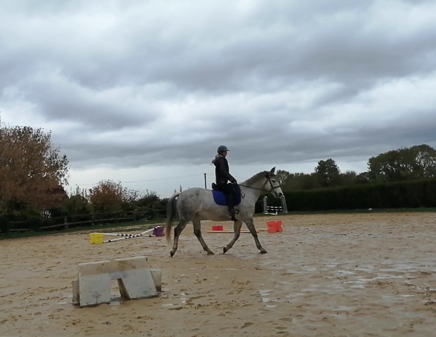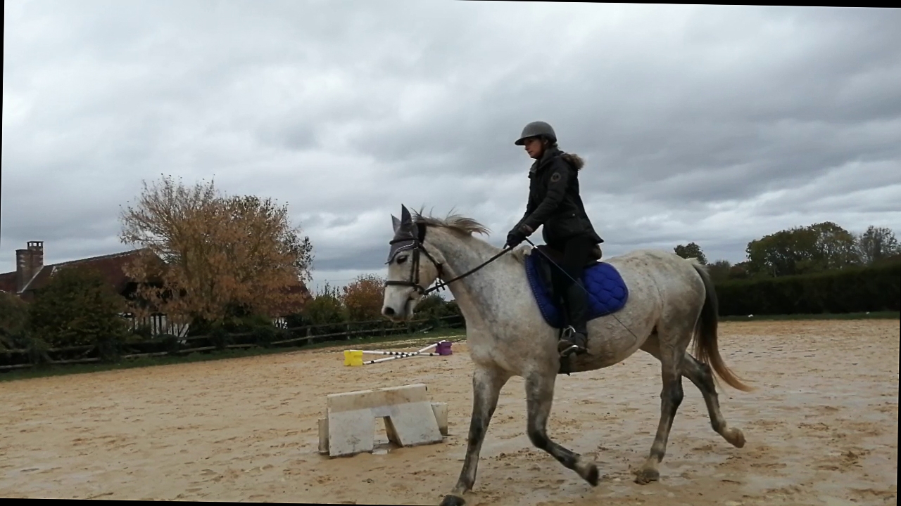 | Dire merci | Bon aujourd'hui j'avais pas du tout envie de me coltiner le Nain monté, donc je me suis dit qu'on allait reprendre les bases mais en longe : réponse immédiate, au boulot pas d'écart, il va là où il doit aller, et que ça explose, demande = réponse, action = réaction. Mode mère Fouettard activité ![]() Oh ben ça a marché d'enfer curieusement. En revanche il m'aura fallu beaucoup de conviction et d'autorité, beaucoup plus que mon tempérament naturel mais bon s'il faut ça.... ![]() J'avais posté mon gentil mari dans le fond de la carrière, mission : jeter plein de trucs en l'air, apparaitre en mode "helloooooo" de derrière les fourrées bref les trucs qui le rendent dingue, ET que monsieur reste au boulot. Si reste au boulot = arrêt = félicitations et bonbon, et pareil vu qu"il a peur des gens aux abords des carrières, quand mon mari débarquait il lui donnait un bonbec. C'était pas mal. Par contre oui faut lui serrer la vis, faut RIEN laisser passer, interdit la demi molle en guise de réponse ! Ensuite j'ai fait la Lili, j'ai testé le bonnet de cervicales BoT et ça a l'air de franchement bien lui plaire et l'aider, mais bon. On aurait dit que je lui avais mis un slibar sale sur la tête donc j'ai rajouté le petit bonnet d'oreilles bleu qui va bien pour cacher l'immondice dessous ![]() Objectif : tourner ! les réponses aux aides. Elle a du mal à tourner à gauche, en tout cas en légère rêne d'ouverture ça répond pas ça plie juste, donc on bossait ça. Pas de bol, début de séance elle était molle à souhait, je débouche au galop, et ensuite elle n'a voulu faire que galoper évidemment le même esprit de contradiction que sa mère ![]() |