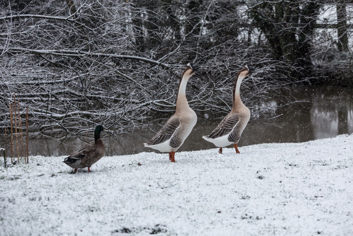| Dire merci | Chance franchement non, c'est sympa deux minutes j'étais contente qu'il neige mais après la pluie et la tempête pendant deux jours non stop les terrains n'en peuvent plus, tout est inondé, il pleut dans la maison, sous la maison, dans la graineterie tout n'est que boue, certains chevaux commencent à fatiguer, j'en ai même une couverte qui tremblait en rentrant ce soir, bon elle est vraiment pas rustique la demoiselle (pas une des miennes) mais bon, c'est pas cool pour eux de tout se taper d'un coup. L'âne était tout raide avec sa neige sur le dos ![]() |