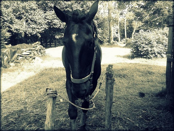 Déconnecté | Tout pareil!^^ Meme pour les cessions de mâchoire! Ça change tout quand même, et aussi les flexions ma jument aime bien, bon lui sa lui fait ni chaud ni froid il est plutôt très "décontracte" comme cheval il est pas du genre sur l’œil donc bon sa sert pas a grand chose... Et du coup j'avais un aiguille et la je suis en double cyprium (je le trouve super d'ailleurs) et a canons assez fin sa leurs fait pas un gros truc dans la bouche qui est juste pas très confortable finalement.. Beh c'est pas facile c'est des réaction très vive et faut trouver le dosage soit un contact franc qui "bouge" pas trop ou le poids des rênes, mais je sais que le miens que ça soit l'un ou l'autre son premier réflexe c'est celui des courses celui qu'on lui a appris quand il avait deux ans... Donc bon faut pas se leurré sa va nous prendre du temps!^^ Ah moi ça va les transition j'ai pas trop de soucis (ouf^^) pas facile sa non plus il y a bien un moyen assez simple en fait c'est de bien posé tes mains sur le garrot et laisser s'y heurté tout seul il va vite faire le rapprochement^^ et pas oublié de l'avoir équilibrer a ce moment la quit a lui demander de se relevé un peu devant sa évite qu'il est trop envie de plonger, |