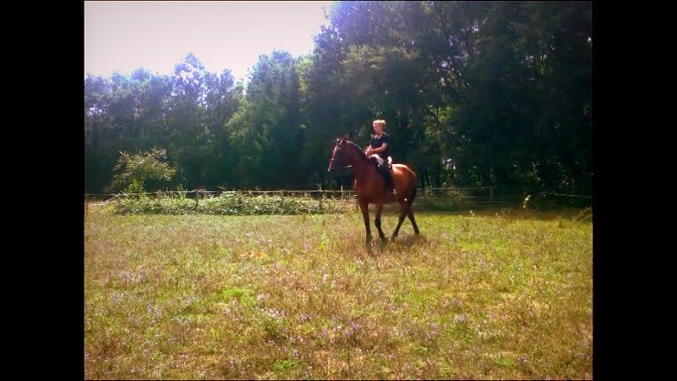 Déconnecté | Bon je viens un peu au nouvelles! Alors je vais faire vite fait mais disons que tout ce porte a merveille=) Le Lulu hyper coopératif comprend tout ce que je lui demande! Je précise que pour l'instant je lui apprend les bouton d'ont j'aurais besoin pus tard, donc tout n'est pas flagrant mais a travailler^^ du coup on a la cession de mâchoire, les variation dans et d'allure (ça ce vois a peine je sais^^), mobilisation des hanches et des épaules, impulsion pas trop mal, incurvation et cession d'encolure pareil. on verra l'attitude de l'encolure et le mettre en place plus tard, il a pas la gueule en l'air c'est pas un soucis pour l'instant^^ Tout est fin et agréable (c'est bien les chevaux un peu sensible^^ou pas..) Mais je suis contente de mon loulou!=) On a même eu droit a deux pas d'épaules en dedans, du moins les prémices!! ![]() Et puis l'entrée furtive du poney dans la carrière qui a eu une soudaine envie d’être sur la vidéo^^ Faut dire que ma carrière est tellement bien faite..... Et pour la jument toujours pareil et de mieux en mieux! La pause lui a fait du bien et a moi aussi ça remet les idée en ordre! Apres bon la jument c'est surtout ne pas la laisser ce mettre sur les épaules!! On peux le voir eu premier rassemblé a chaque fois on y est pas loin.... Et puis au premier départ au galop madame a la flemme^^ mais bon ca roule!=) |