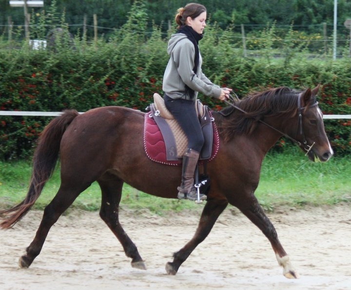 | Dire merci | Merci Iram, j'ai regardé, la première photo a 9 ans quand même ! Et la dernière que j'ai mise, 5 ans... Depuis la juju est à la retraite, et je fais des bêtises (un peu moins j'espère)(et avec plus d'humilité ça c'est sûr ) sur une toute neuve. Mon soucis moi c'est que je lai eu pas mal! Mais avec ces putain de problèmes on a toute les deux perdue dans l'histoire. Ca aussi c'est un danger, après une convalescence. Parce que le cheval se souvient bien de ce qu'on lui demandait, des mouvements, des figures... mais a perdu de sa tonicité. Donc comme ce sont de braves bêtes, souvent ils font "à peu près" pour faire plaisir, mais trichent à défaut de pouvoir faire autrement. Genre "ok je suis placée et je trotte en cercle", mais les abdos ne suivent pas, le dos se ratatine, le dos aussi, le cheval s'écrase sur son épaule externe, a le cul qui sort, etc... Et le cavalier amateur, qui retrouve son cheval plein de bonne volonté, se fait facilement avoir aussi avec de fausses sensations. Pour ça c'est 3h/sem avec une séance de longe, Ca me parait beaucoup, déjà dans l'absolu, et en plus avec une jument harper, qui travaille actuellement 2 fois par mois. Déjà si tu la montes 30-40min 2-3 fois par semaine sur des choses basiques en travaillant les fondamentaux, avec éventuellement une petite longe de 20min en complément, tu devrais vite voir du changement. Dans sa concentration comme dans son physique. |