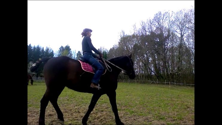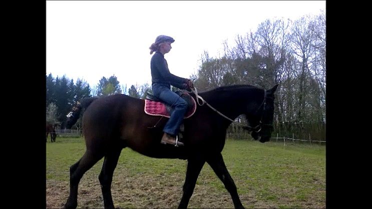 | Dire merci | aprés Pradier préconisait d'aborder l'extension paroxistique sur un petit cercle a cadence trés lente et avec une forte impulsion,pour laisser le temps aux abdos et au garrot de se remonter,pour ensuite élargir le cercle en conservant cette attitude (et non, comme bcp le pensent en mode aspirateur) j'aime pas la vidéo postée, on a un cheval avec le dos comme un treteau,qui trotte aux jambes,diagonalise son pas, qui monte les jarrets en desengageant. pas beau...sans compter la caudectomie qui prive le cheval d'un important balancier |