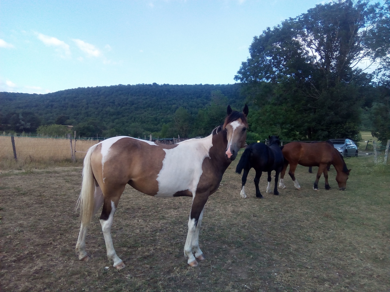 | Dire merci | k.zel ca vient certainement du fait qu'elle a du halter dans ses aïeux donc très costauds. kagnotte j'espère mais ca semble bien parti! Sinon, j'ai acheté un ballon, est ce que je lui file au pré ou juste sous surveillance? n fait on m'a conseillé de lui acheter ca mais ca me fait peur... |