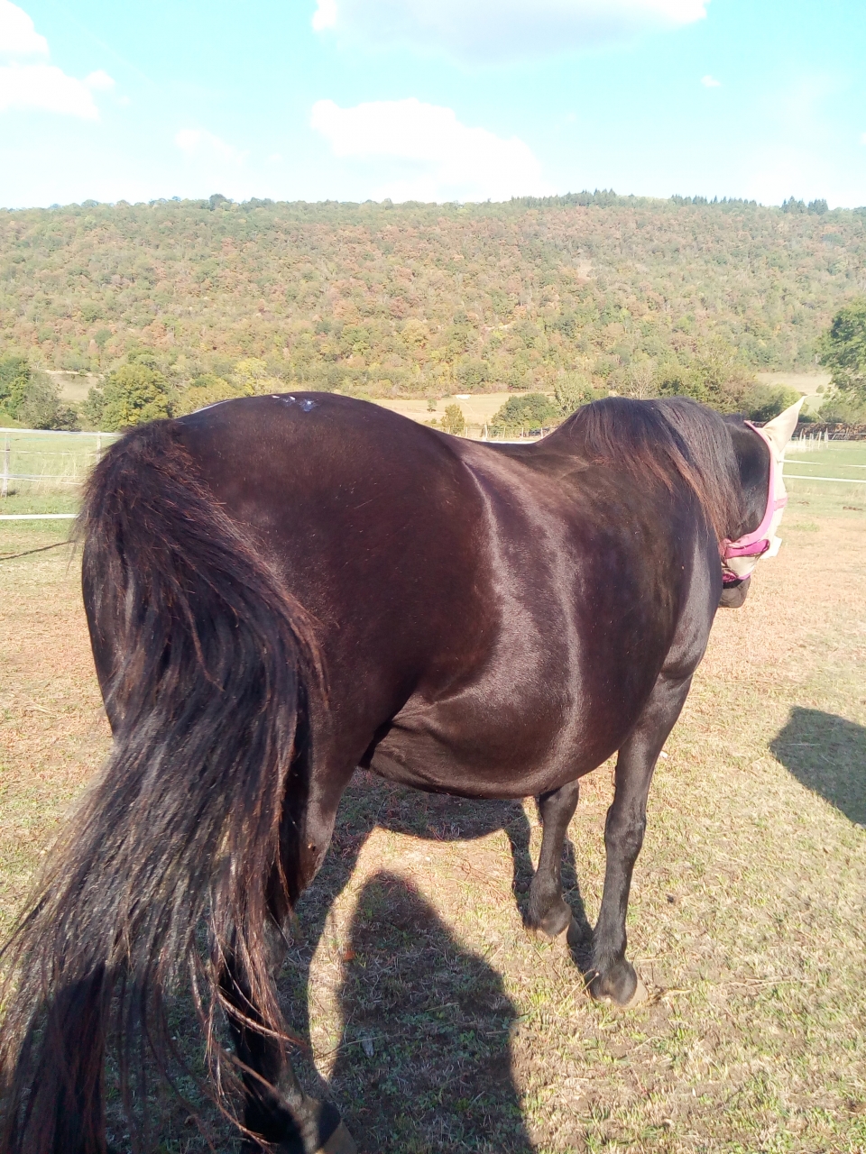 | Dire merci | Bon.... IP a eu un accident... comment ? pourquoi? Nous ne savons pas! Toujours est-il que ses ligaments sont dechirés (grasset) et que je suis en attente des resultats de radio... ![]() Ca fait chier, ca fait chier parce que d'un coup tout s'envole concernant notre avenir equestre, mais quel bonheur de la voir avec le moral! Du coup on commence par 6 semaines de stabu avec 1 sortie douche chaque jour très lentement. (200m A/R) AINS le matin (Rheumocam) avec massage local Ekyflogyl + Flector. On va y arriver, elle le merite! |
