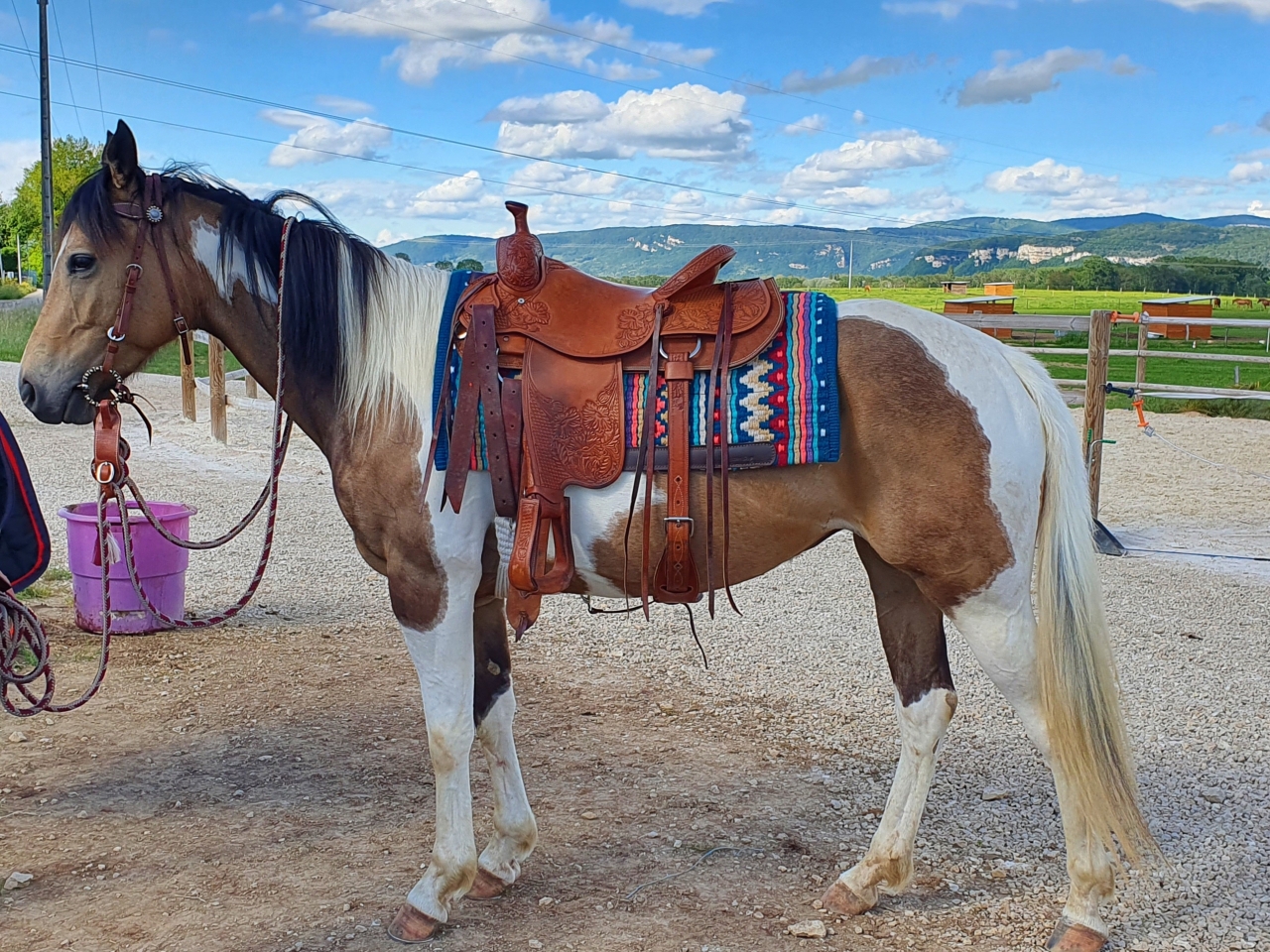 | Dire merci | Le temps file a toute vitesse! Mystic est toujours égale a elle même même si je vais la voir moins souvent que je ne le voudrais.... on balade a pieds et elle fait faire des baptèmes poney aux copines de ma fille... Elle vit toujours dans son petit troupeau de vieux, et je pense qu'elle s'y sent vraiment bien. Pour IP, nous sommes dans une pension de proprietaires a 25min de la maison, elle est en paddock/boxe avec sortie 7j/7 en paddock avec un 3 ans. Elle grandit (enfin façon de parler) et est toujours parée et motivée a decouvrir des choses! Elle a donc une dp depuis 1,5 mois, et tout se passe pour le mieux, elle m'a prouvé une fois de plus un mental hors pair, je suis vraiment époustouflée par cette jument qui se lance toujours dans les choses a fond! Parce que IP n'est plus qu'un petit cheval Western, non non non: IP de ranch: (vieille photo datant de 2021)IP le 05/06: ![]() Elle est polyvalente, et on peut tout faire avec elle de façon assez simple en plus! |