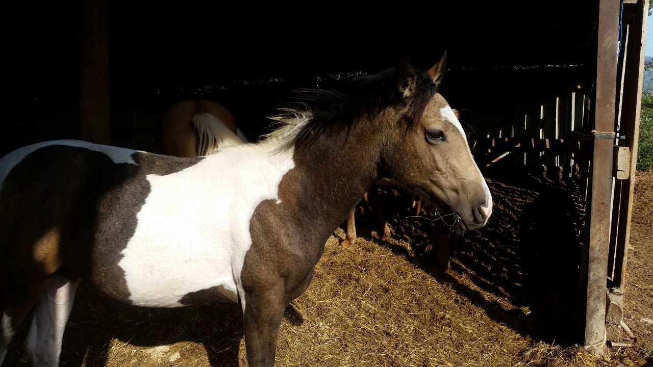 Dire merci | Elle est tobiano ta pouliche la tête est colorée et les tâches franchissent la ligne de dos. Si tu veux te rendre compte, mon feeling est tovero est à le marquage typique du tovero avec beaucoup plus de blanc et la tête blanche a l exception des oreilles. |