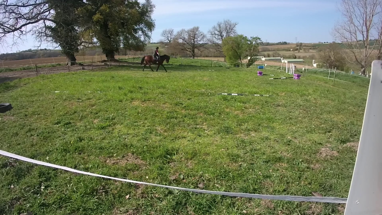 | Dire merci1 | J’ai pas tout regardé! C’est pas mal la première vidéo Il précipite un peu par moment et manque de stabilité mais ça reste assez léger.Sur la deuxième on voit pas bien, mais c’est sur que le galop à droite c’est pas ça.. il serait pas mieux en t’assayant plus? Après comme disait Le Pex, c’est sur que ça sera assez compliqué d’avoir mieux avec une séance par semaine |