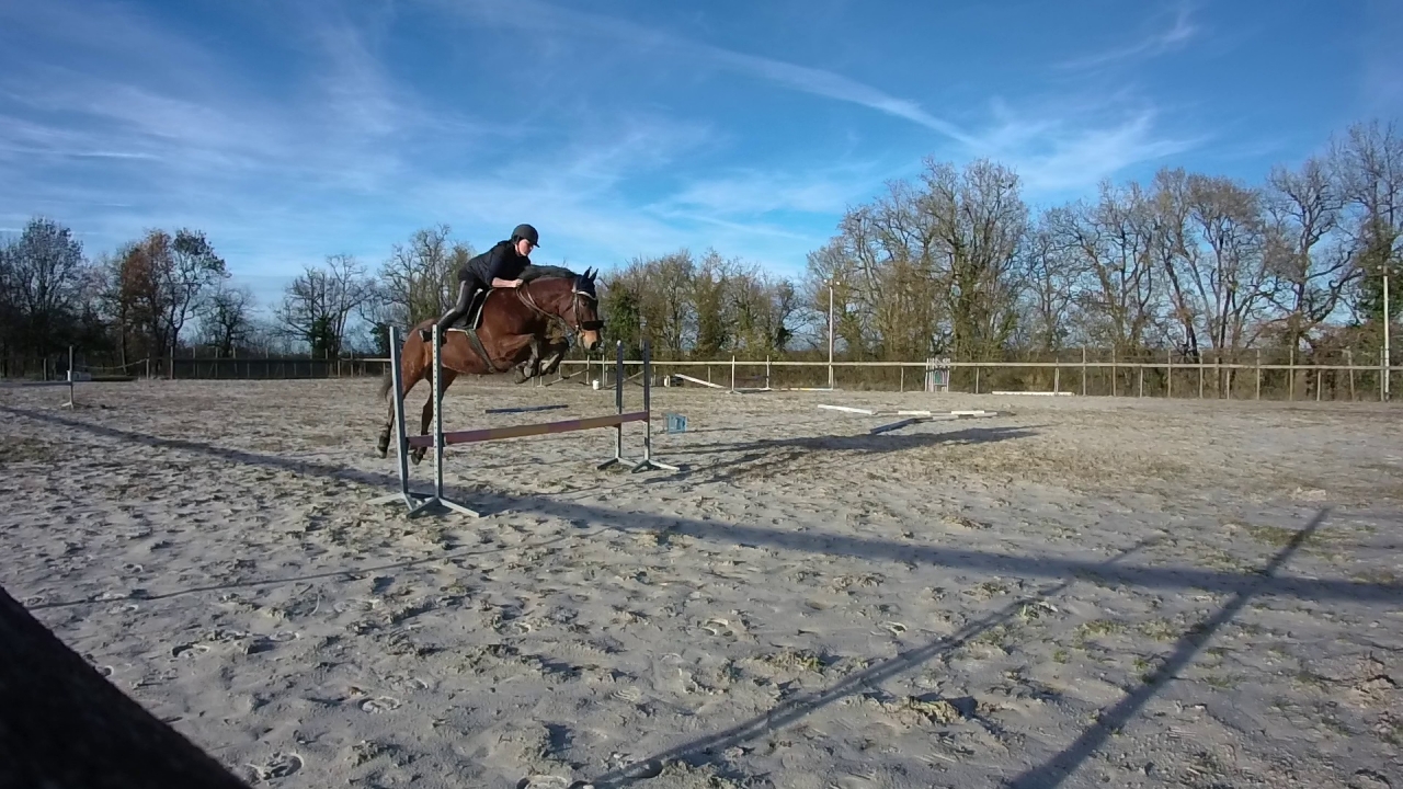 | Dire merci | Ah je vois qu'on a fait le même genre de séance Pour l'oxer tu aurais pu mettre du pied des deux côtés! De manière générale vaut mieux habiller un peu plus , c'est plus dur à sauter ces obstacles vides Il se débrouille bien dans la ligne, mais fait attention sur l'oxer tu a tendance à précéder tes sauts Sur la combinaison on voit pas très bien mais il a l'air de rentrer trop fort. Rentrer au trot ça l'aidera à prendre le temps de s'articuler sur la suite oui en tout cas comparé à des vidéos que tu avais mis y'a un moment à l'obstacle tu accroches beaucoup moins la bouche et lui est content d'aller sauter |
