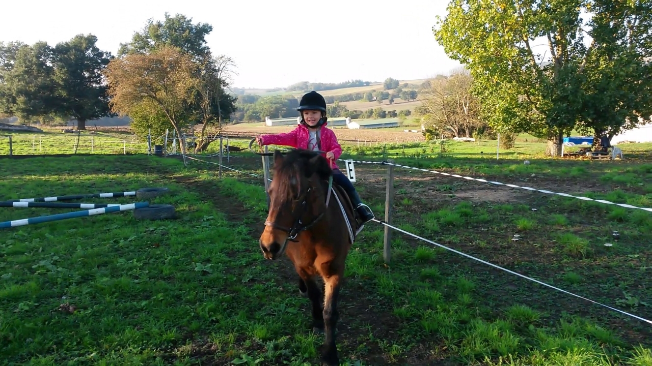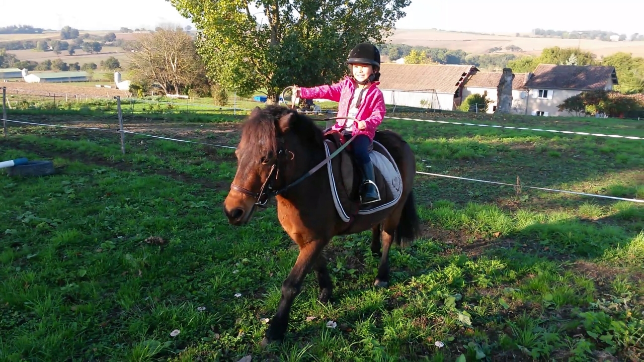 | Dire merci | ensuite j'ai fais monté ma fille, qui n'a encore pas voulu monter son poney mais la ponette de son frère ![]() mais ca va elle s'en sort bien on fait beaucoup d'arret, avancer tourner. ensuite slalom passer entre des barres puis arret devant une barre. pour le trop je lui tiens le genoux![]() ![]() ![]() ensuite les deux grands on decouvert la voltige, ils se sont amusés. le grands de 9 ans ne sait pas du tout monter mais ca il aime bien. courrir et sauter sur la jument se mettre a genoux , debout, sauter, descendre en galipette, faire le moulin... ils ont kiffés ! la prochaine fois je sors le surfaix ! dommage j'ai pas de photos ![]() |