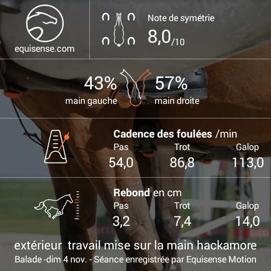 | Dire merci | Comme c'est vert chez toi !! Nous on voulait aller se balader dimanche mais les chasseurs étaient à même pas 300m des écuries et ça faisait un bruit Alors on n'a pas tenté.. Mais j'aime bien travailler en extérieur, c'est moins monotone.Je vois bcp de pub pour equisens motion sur les réseaux. Je suis le blog parce qu'il y a tjrs pleins d’exercices sympa. C'est intéressant de voir le temps passer main droite main gauche ! |