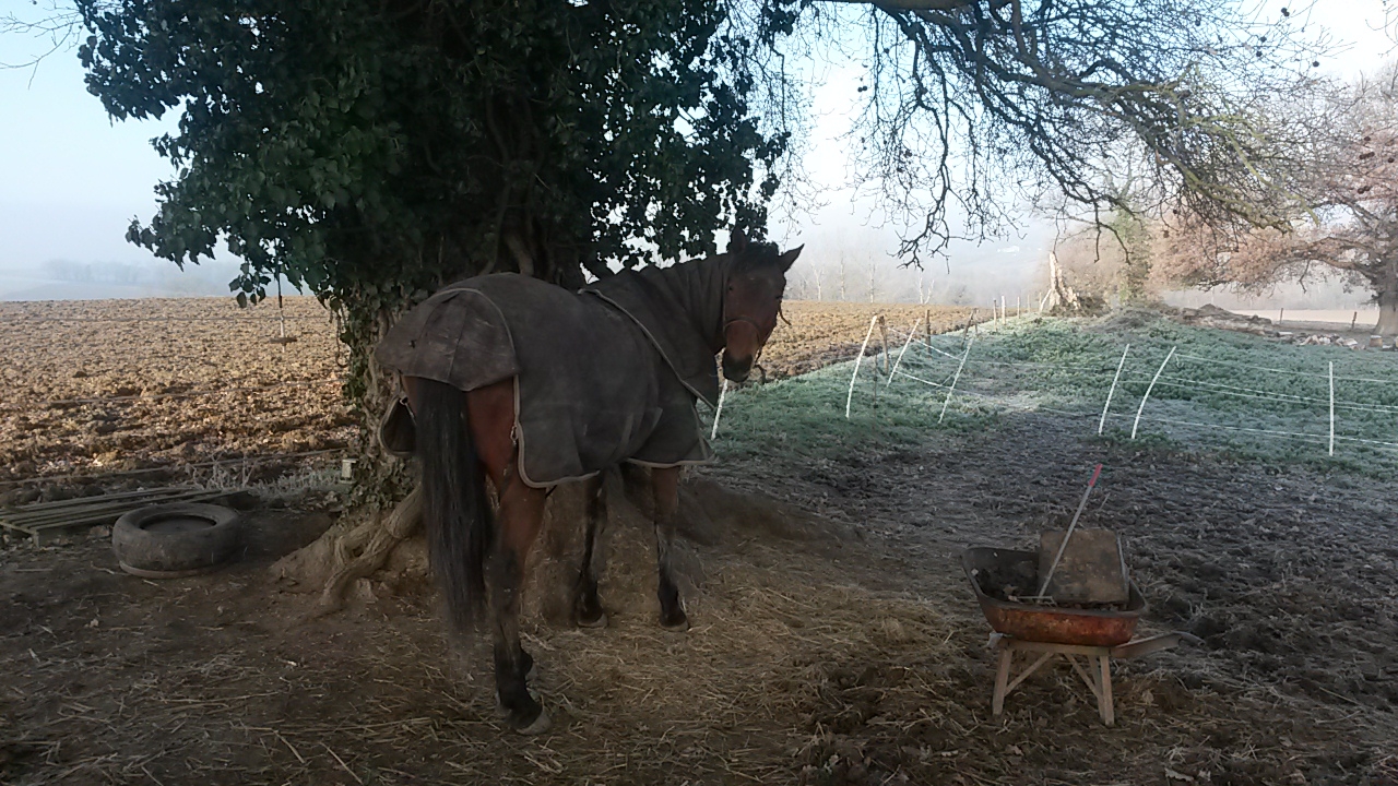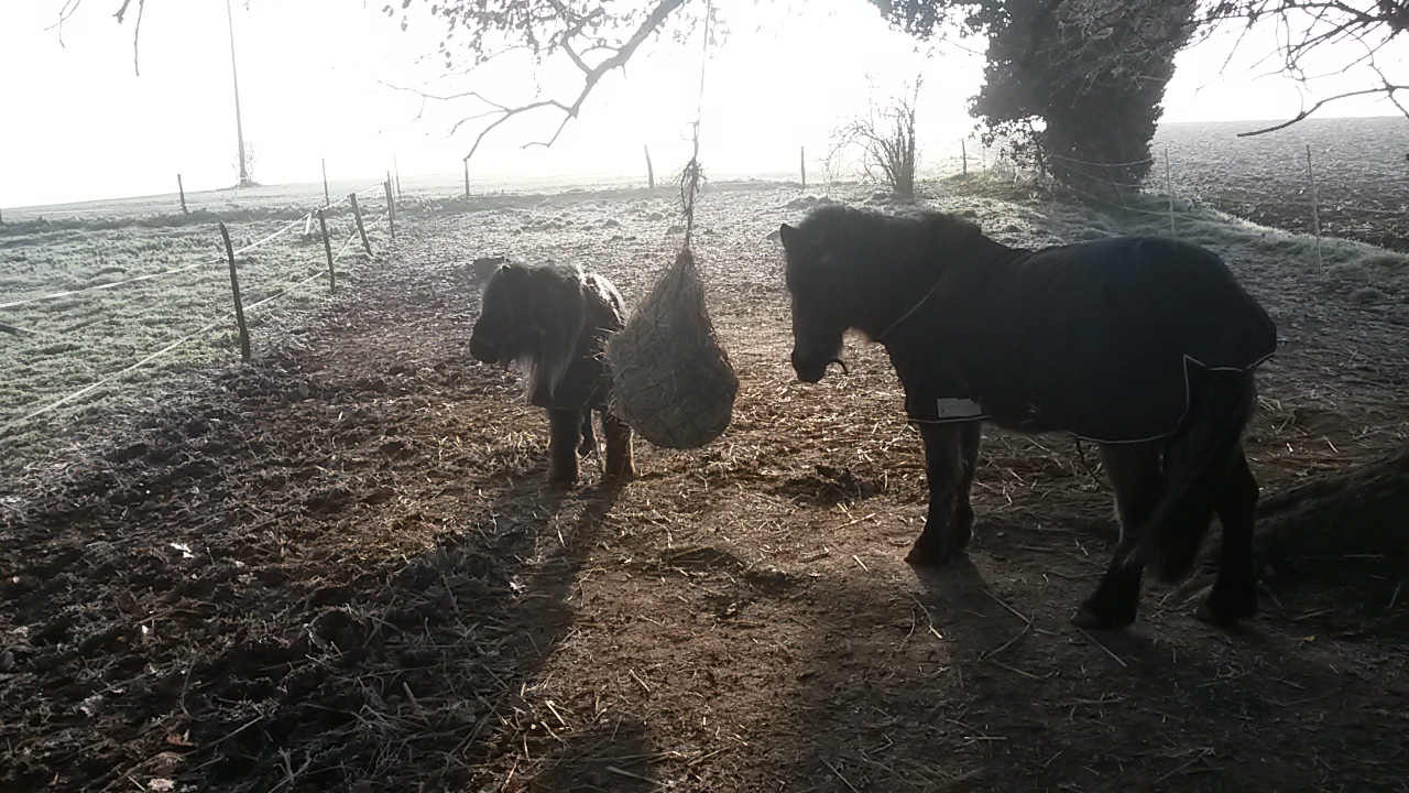 | Dire merci | sinon aujourd'hui petite parenthese j'ai amener la fille en balade pendant 45min avec son poney, la pauvre avec le temps qu'il a fait depuis , elle n'a pas monté depuis plus de 2 mois.... donc voici son gros yéti de poney comme il est vieux (il va sur 22 ans) il commence a avoir le dos en tréteau donc je lui met un amortisseur mouton pour le pas lui peser sur la colonne avec la selle (qui est une super selle anglaise en cuir de super qualité mais assez lourde comme les selles à l'ancienne) ![]() ![]() et les deux autres zouaves qui n'en peuvent plus de voir partir leur pote ![]() |