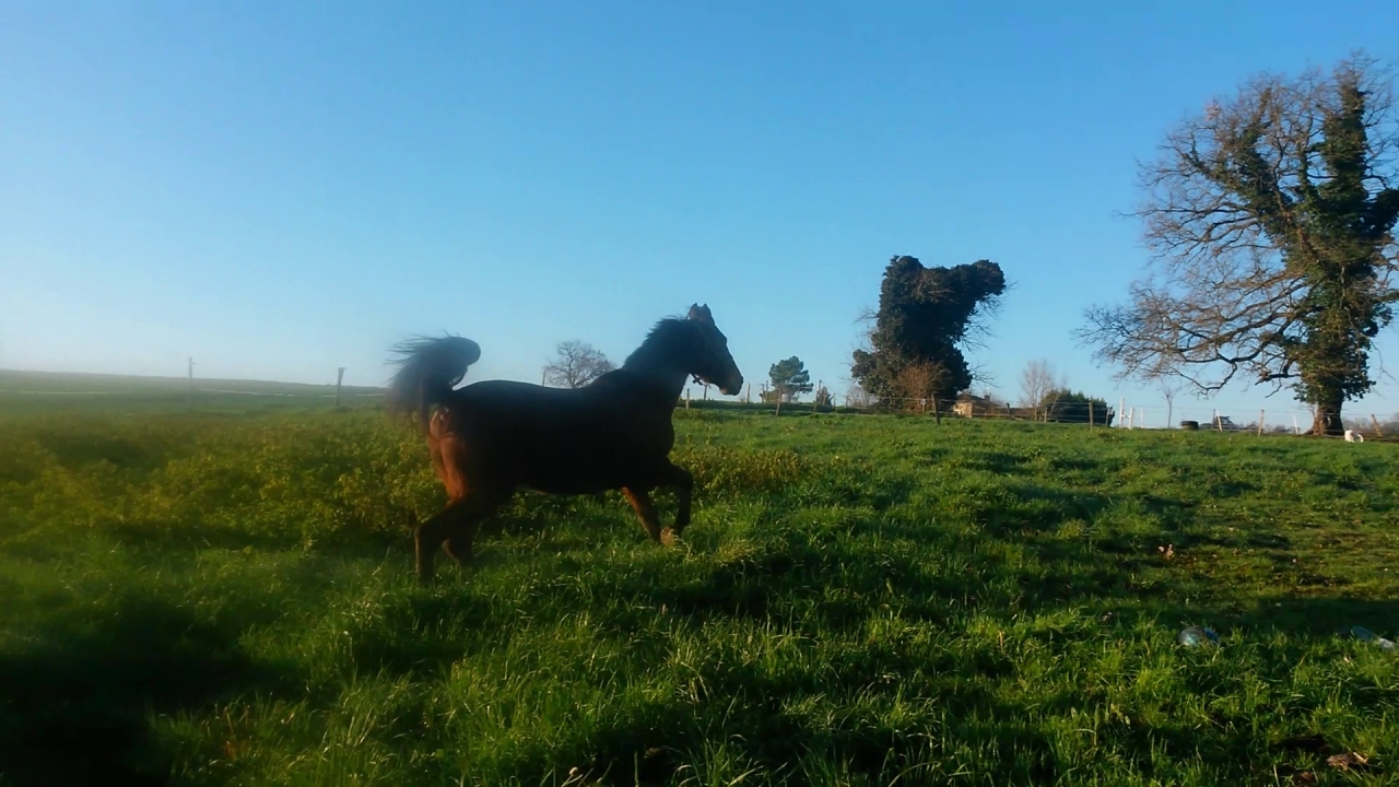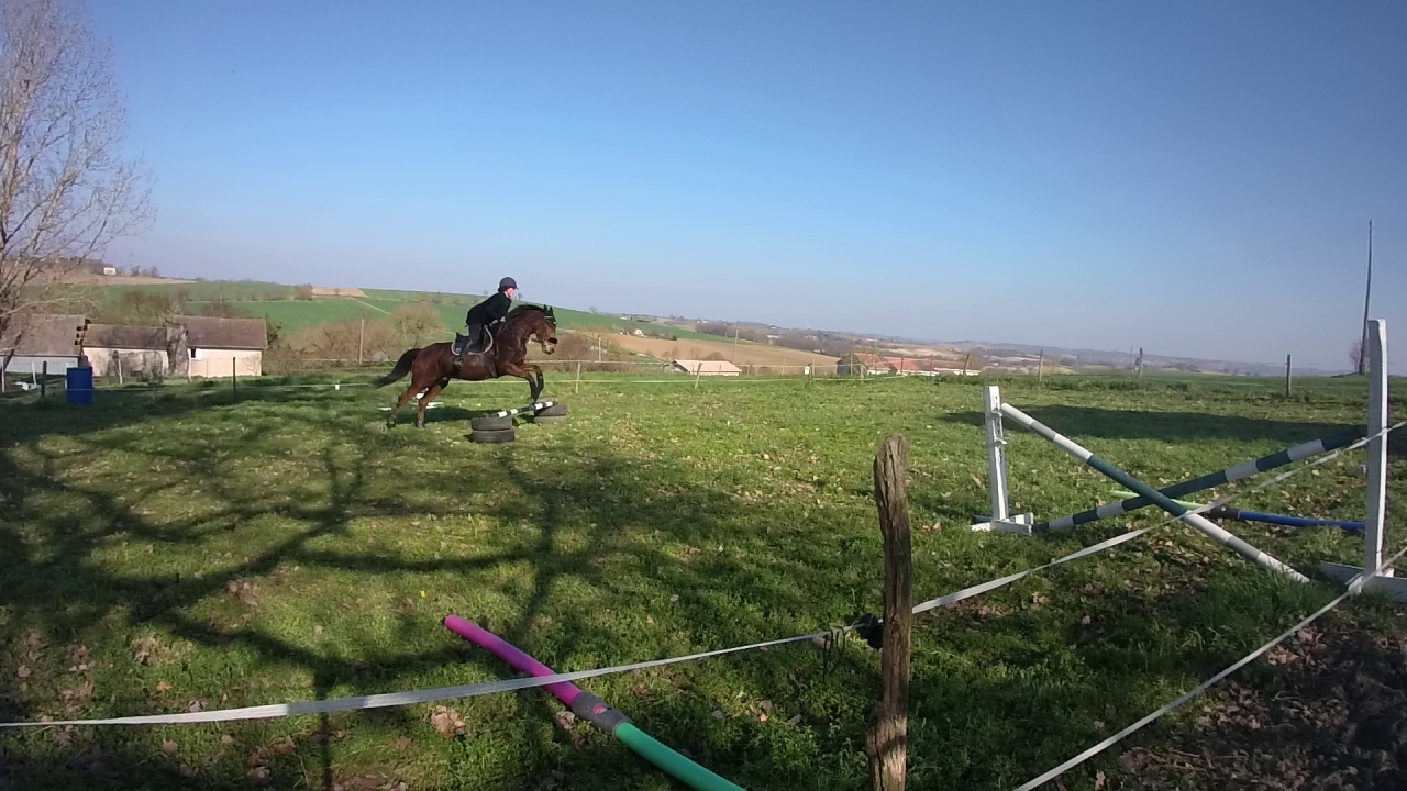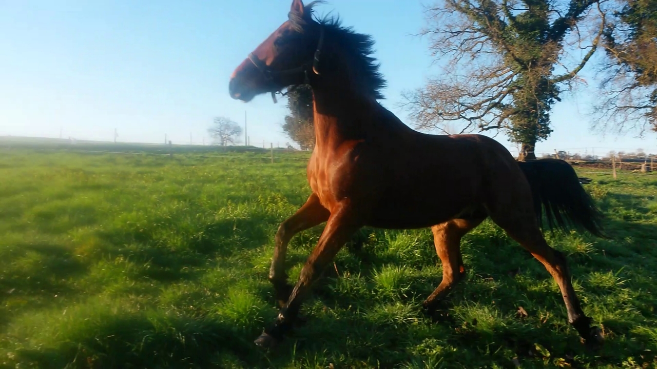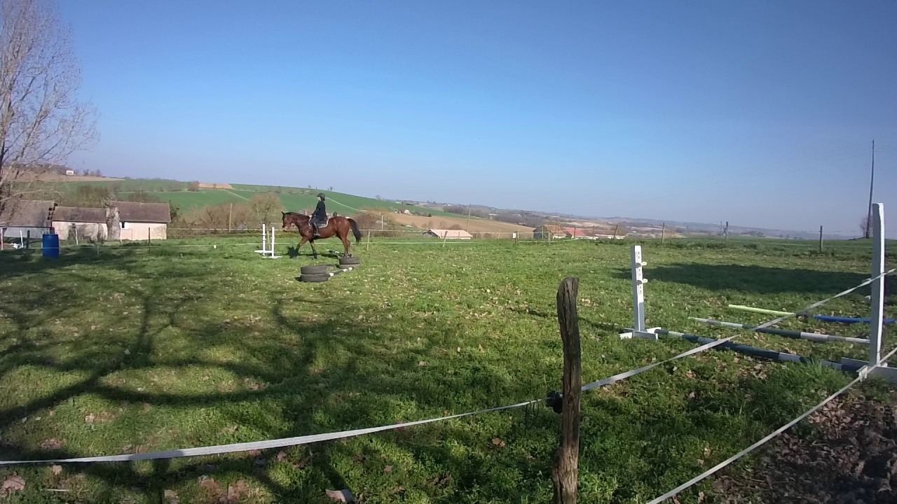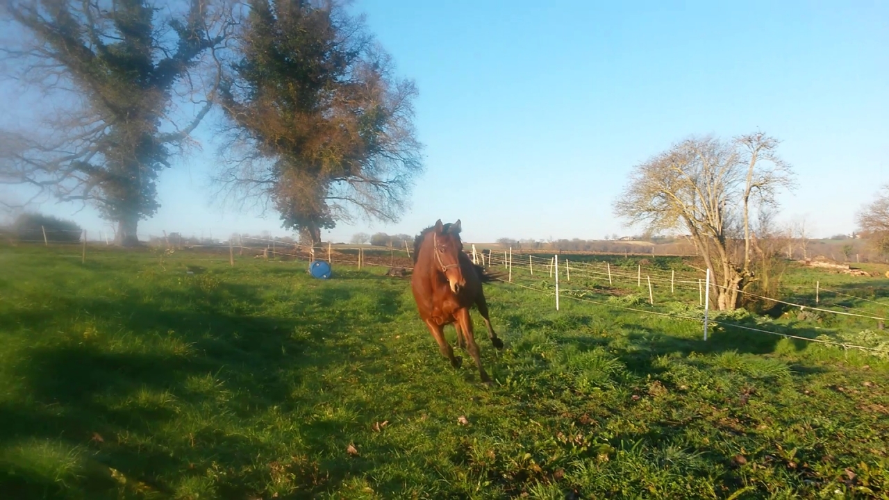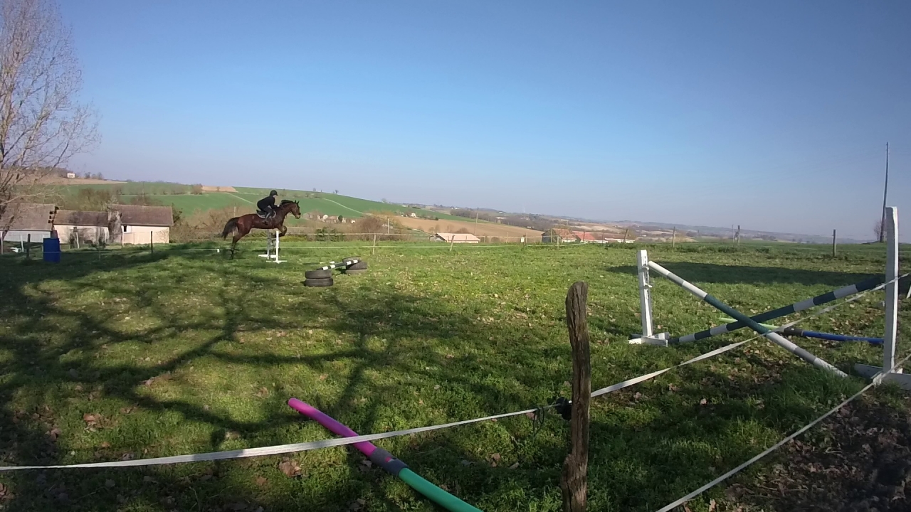 | Dire merci | sinon voici une vidéo du galop de dimanche d'abord à main gauche puis à main droite désolée ca bouge un peu car la go pro etait accrochée dans un arbre et il y'avait du vent ) |