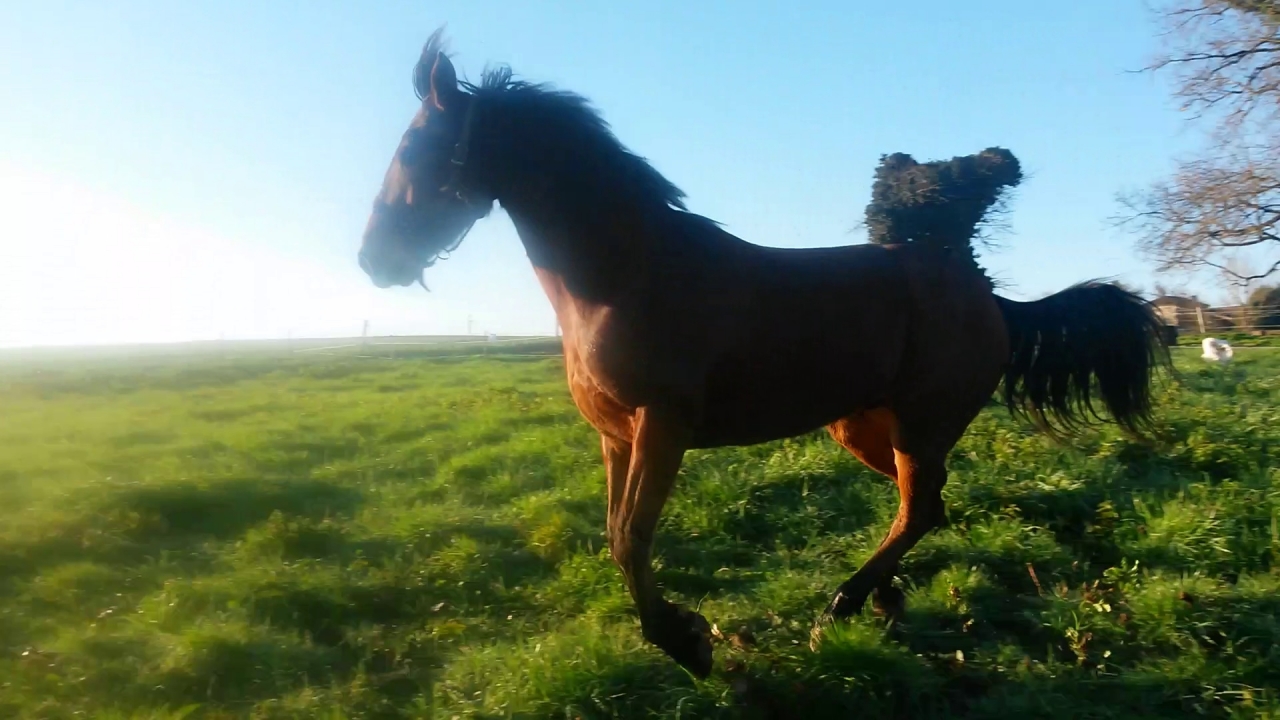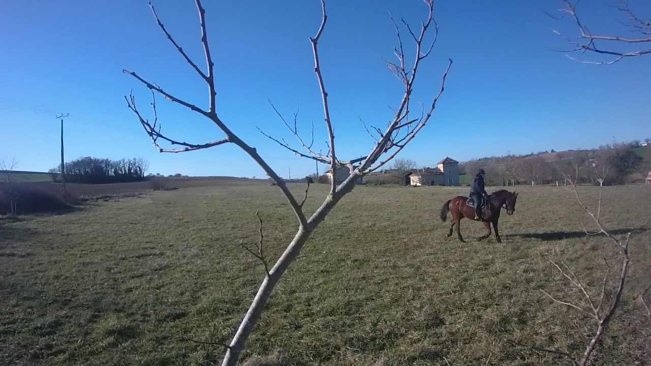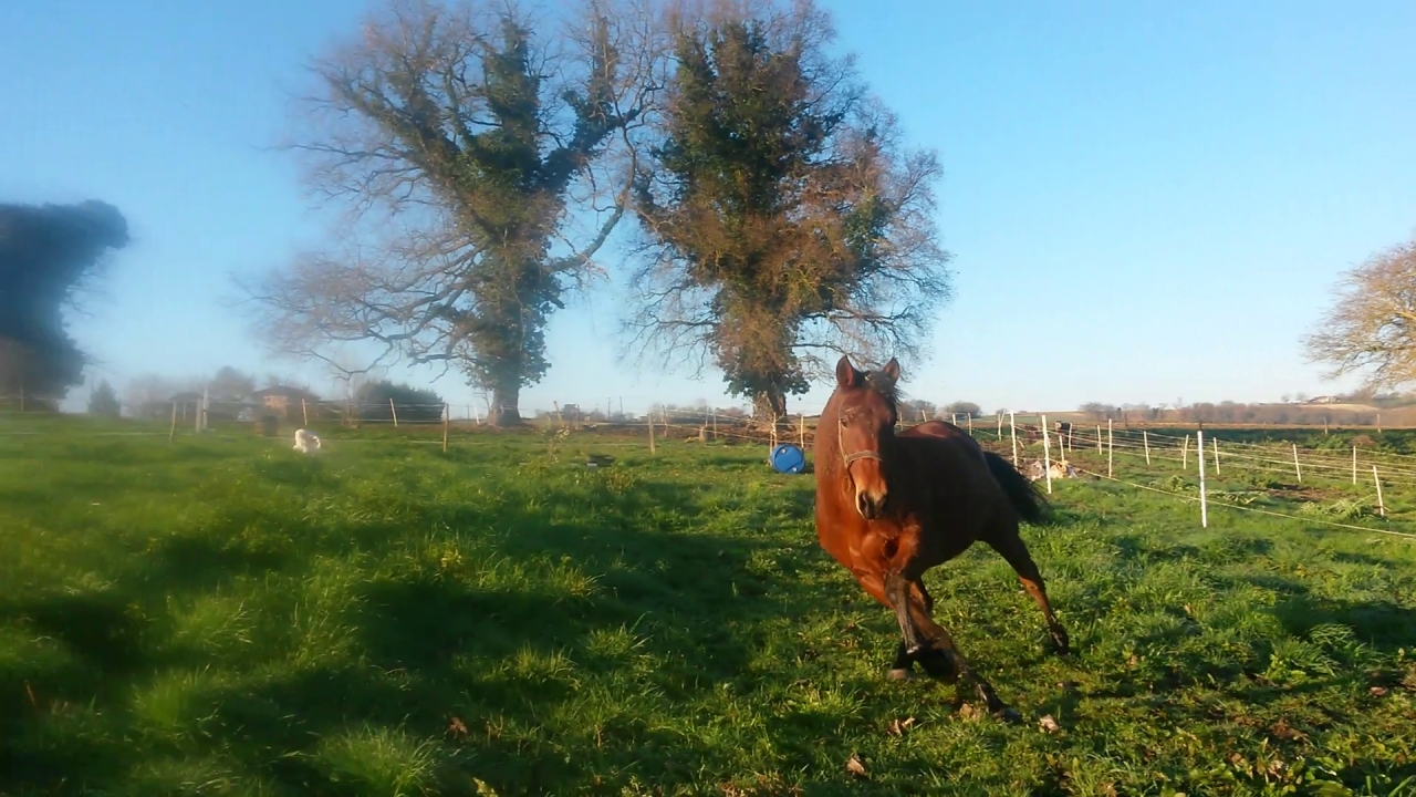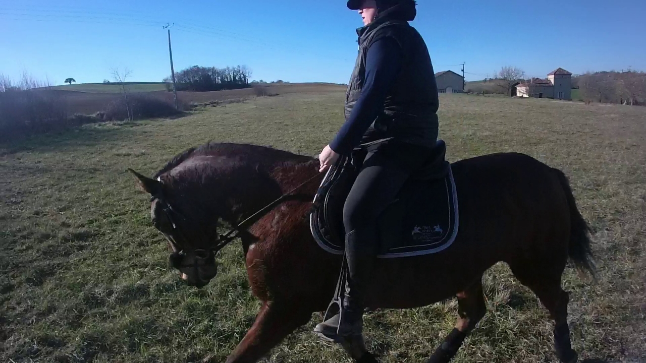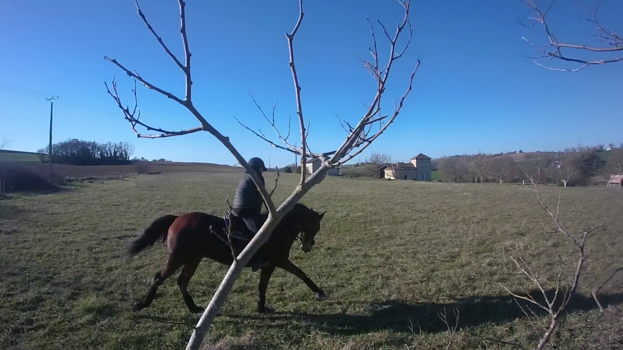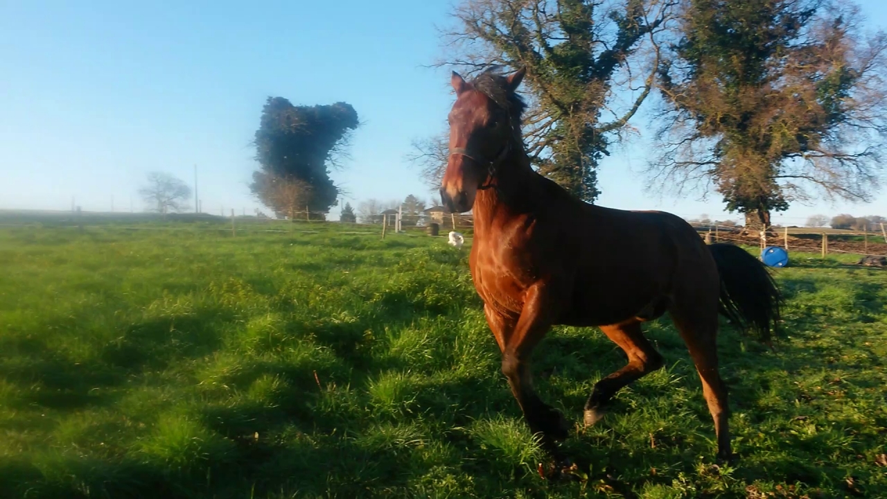 | Dire merci | sinon voici une vidéo du galop de dimanche d'abord à main gauche puis à main droite désolée ca bouge un peu car la go pro etait accrochée dans un arbre et il y'avait du vent ) |