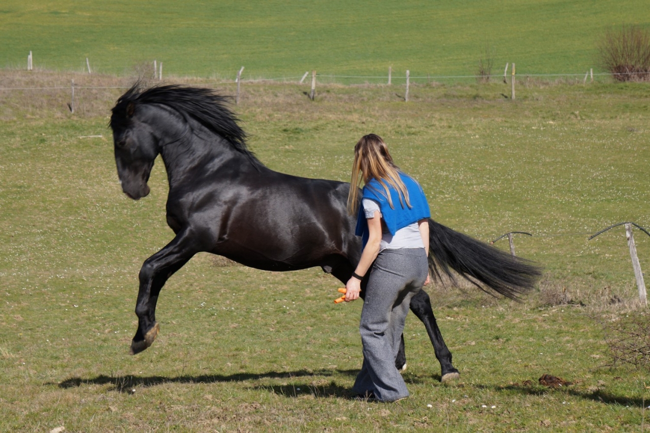 | Dire merci | J'adore la photo d'Ithaque lors des grattouilles La différence de gabarit est impressionnante, tous deux étant bien faits en plus. Invasor a vraiment déjà une sacrée carrure et une belle encolure, j'aime beaucoup. |