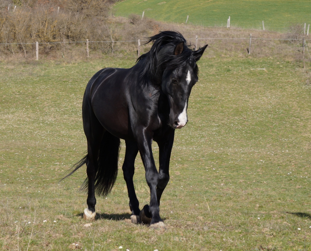 | Dire merci | Salut la compagnie! ça fait un bail que je n'ai pas mis de nouvelles photos de la troupe, alors je me disais que pour les vacances, il fallait remédier à cela ![]() Je vais donc faire bref en ne re-présentant pas à nouveau toute la troupe, mais en présentant juste les petits nouveaux (pour ceux qui voudraient des détails sur qui est qui, voici le site de l'élevage qui, normalement, est très complet: Lien )Mais auparavant, petit apparté sur le chéri de ces dames, mon fidèle Akanto, poulichon-d'amour, qui m'a permis de faire un joli cadeau de mariage à une amie, avec la complicité d'un ami photographe ![]() ![]() ![]() (j'avoue, on s'est plutôt fait plaisir à prendre des photos au galop, et dans le sable très profond des Landes c'était plus simple pour Akanto )la vidéo Lien Alors, sinon, les babys....que des mâles cette année, alors autant Eléa a innové, elle qui ne m'avait fait que des filles (Elégie, Faline et Hestia) auparavant, mais pour les autres, les purs-PRE, les filles étaient un peu espérées, j'avoue mais non, pas pour cette année, 3 poulains, 3 gars, c'est ainsi ![]() Alors sans plus attendre, je vous présente Império d'Auréa, né le 15 mars 2018, petit frère d'Elégie, Faline et Hestia Comme ses soeurs, gabarit 1/4 trait, mais pour le coup il a pris un côté chic et choc qui le distingue beaucoup de ses soeurs! mais évidemment toujours aussi gentil, un véritable ourson en sucre ![]() ![]() Lebrera était supposée talonner Eléa de près, mais c'était sans compter sur un avortement précoce et discret, et une re-saillie en août, en toute discrétion....fin mars, on savait donc qu'il y avait un polichinel dans le tiroir, mais on ne savait pas pour quand....elle a enfin levé le suspens le 8 juillet 2018 à 20h en nous présentant son 4e fils avec Akanto visiblement elle est contente d'elle, et a décidé de ne pas changer une équipe gagnante Je vous présente donc Ithaque, 10 jours aujourd'hui! (photo de sa naissance) ![]() ![]() Et le "nouveau", le premier fils de Calina (avec Akanto évidemment ), Invasor d'Auréa, futur grand cheval dans plusieurs sens du terme, mon préféré physiquement à ce jour ![]() ![]() *suite p1* Message édité le 21/09/20 à 01:55 Message édité le 25/09/20 à 23:38 |