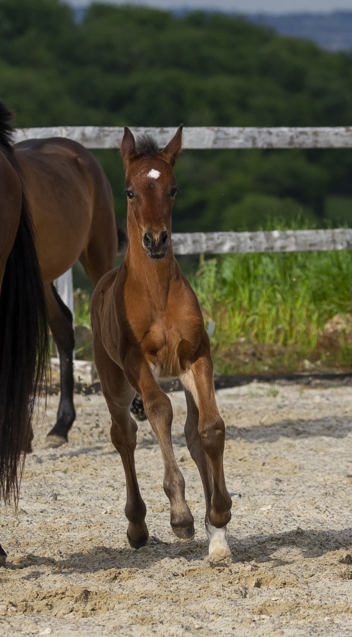 | Dire merci | Salut la compagnie! ça fait un bail que je n'ai pas mis de nouvelles photos de la troupe, alors je me disais que pour les vacances, il fallait remédier à cela ![]() Je vais donc faire bref en ne re-présentant pas à nouveau toute la troupe, mais en présentant juste les petits nouveaux (pour ceux qui voudraient des détails sur qui est qui, voici le site de l'élevage qui, normalement, est très complet: Lien )Mais auparavant, petit apparté sur le chéri de ces dames, mon fidèle Akanto, poulichon-d'amour, qui m'a permis de faire un joli cadeau de mariage à une amie, avec la complicité d'un ami photographe ![]() ![]() ![]() (j'avoue, on s'est plutôt fait plaisir à prendre des photos au galop, et dans le sable très profond des Landes c'était plus simple pour Akanto )la vidéo Lien Alors, sinon, les babys....que des mâles cette année, alors autant Eléa a innové, elle qui ne m'avait fait que des filles (Elégie, Faline et Hestia) auparavant, mais pour les autres, les purs-PRE, les filles étaient un peu espérées, j'avoue mais non, pas pour cette année, 3 poulains, 3 gars, c'est ainsi ![]() Alors sans plus attendre, je vous présente Império d'Auréa, né le 15 mars 2018, petit frère d'Elégie, Faline et Hestia Comme ses soeurs, gabarit 1/4 trait, mais pour le coup il a pris un côté chic et choc qui le distingue beaucoup de ses soeurs! mais évidemment toujours aussi gentil, un véritable ourson en sucre ![]() ![]() Lebrera était supposée talonner Eléa de près, mais c'était sans compter sur un avortement précoce et discret, et une re-saillie en août, en toute discrétion....fin mars, on savait donc qu'il y avait un polichinel dans le tiroir, mais on ne savait pas pour quand....elle a enfin levé le suspens le 8 juillet 2018 à 20h en nous présentant son 4e fils avec Akanto visiblement elle est contente d'elle, et a décidé de ne pas changer une équipe gagnante Je vous présente donc Ithaque, 10 jours aujourd'hui! (photo de sa naissance) ![]() ![]() Et le "nouveau", le premier fils de Calina (avec Akanto évidemment ), Invasor d'Auréa, futur grand cheval dans plusieurs sens du terme, mon préféré physiquement à ce jour ![]() ![]() *suite p1* Message édité le 21/09/20 à 01:55 Message édité le 25/09/20 à 23:38 |
