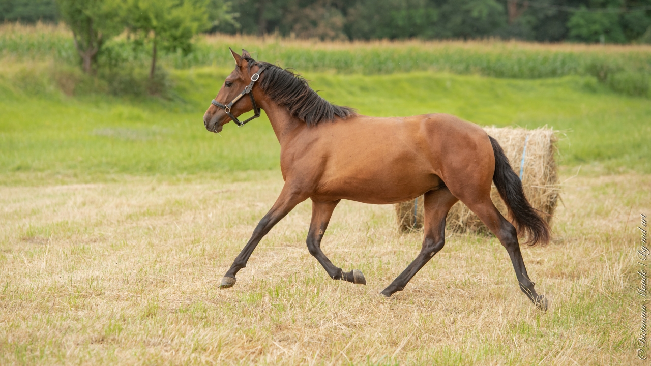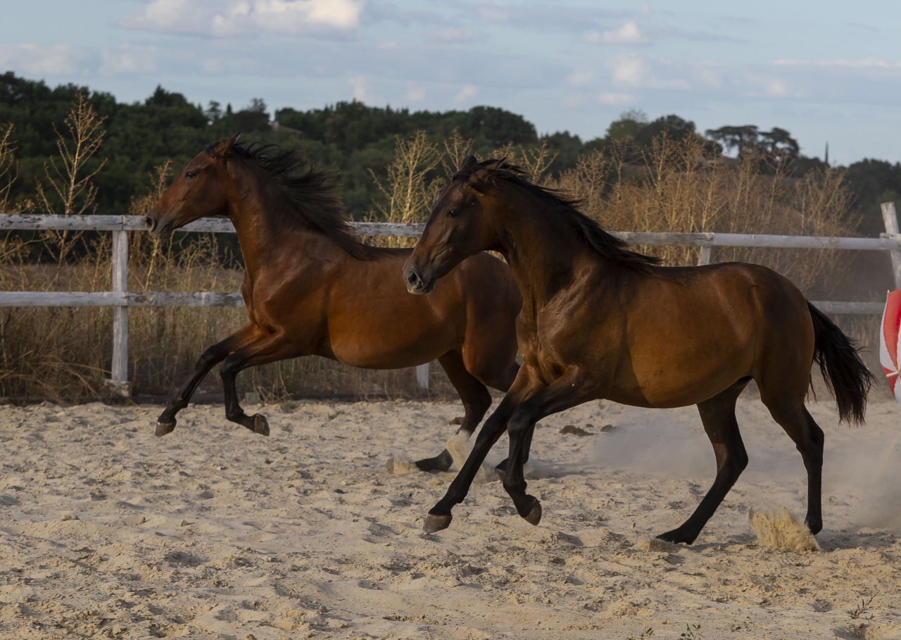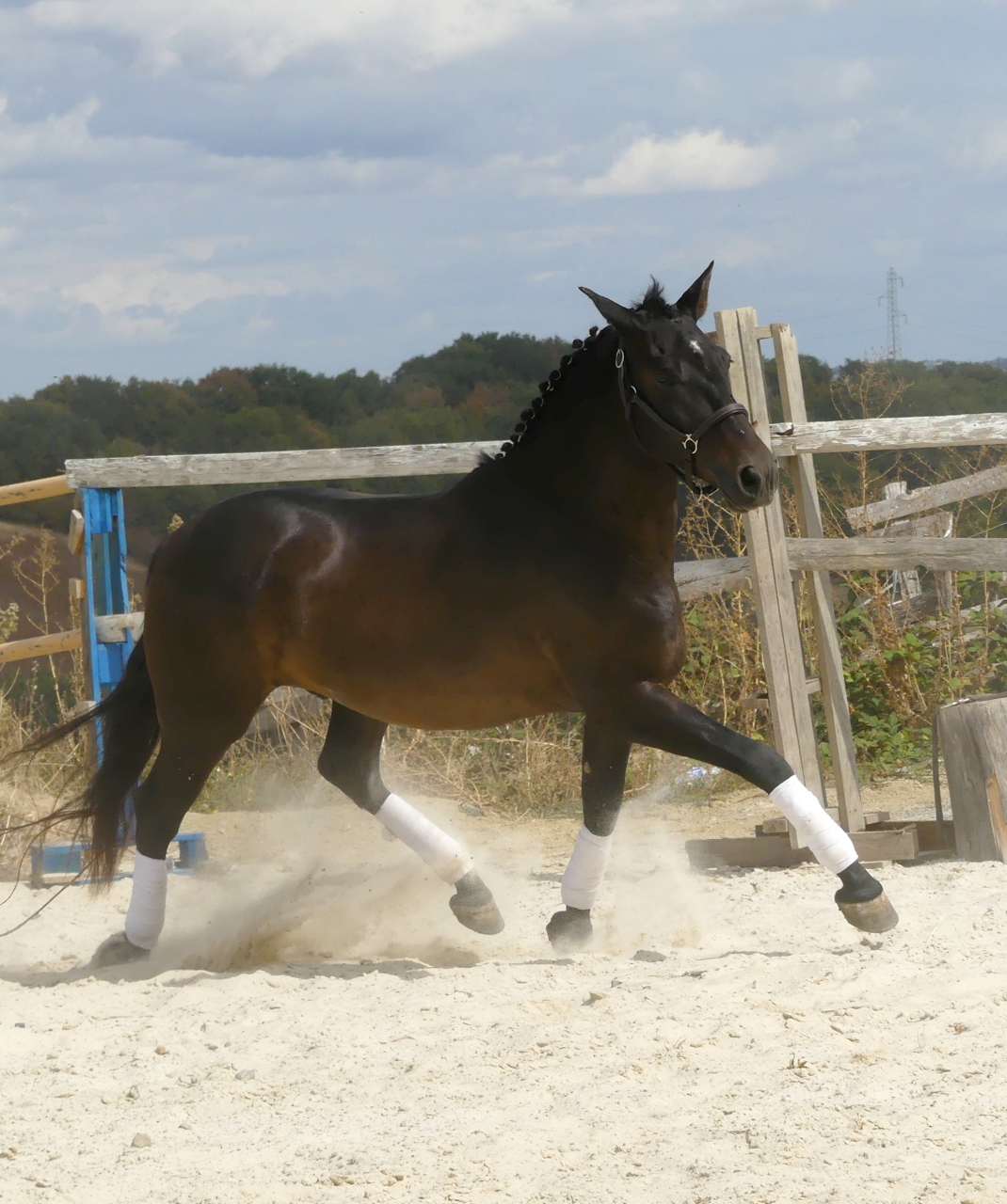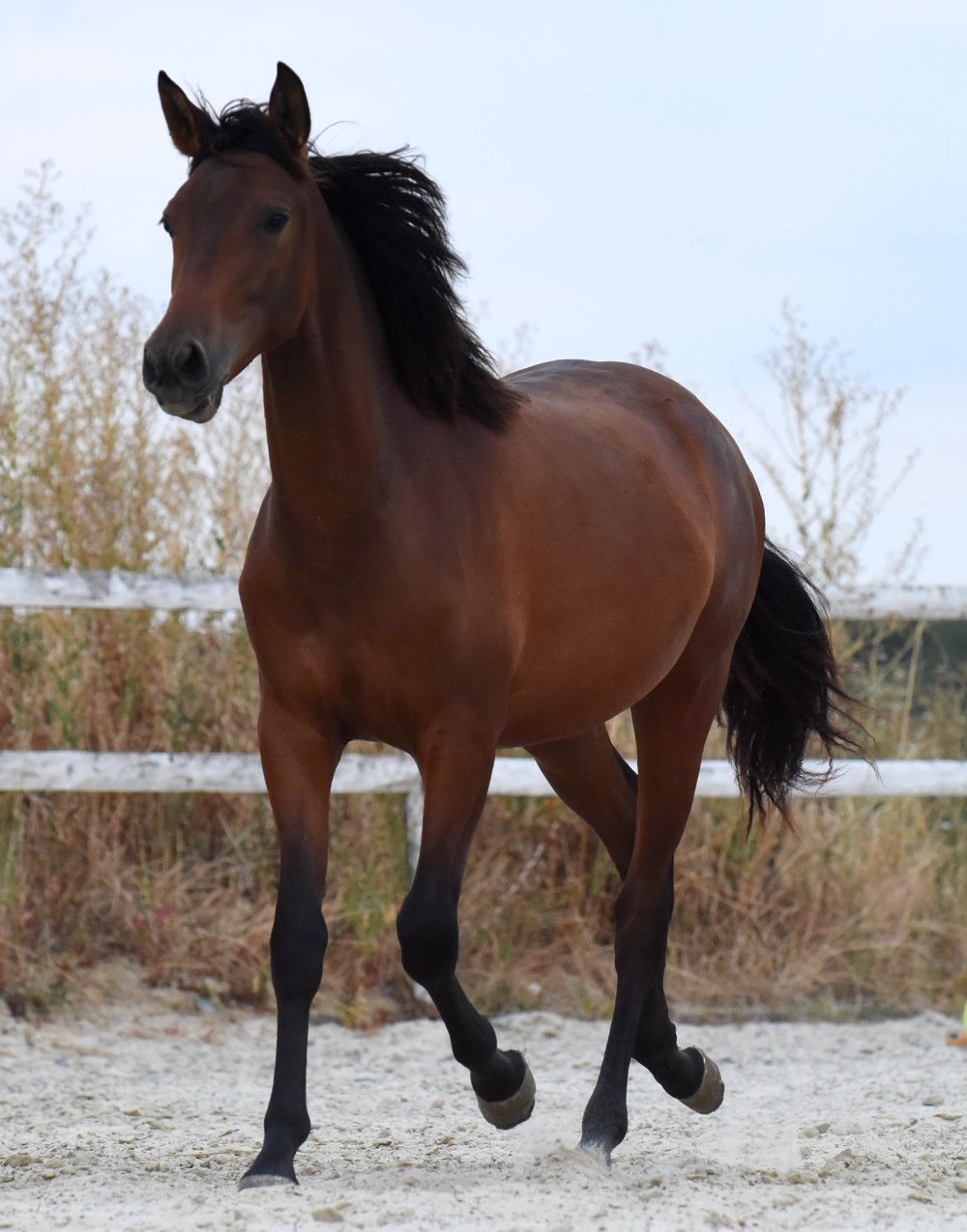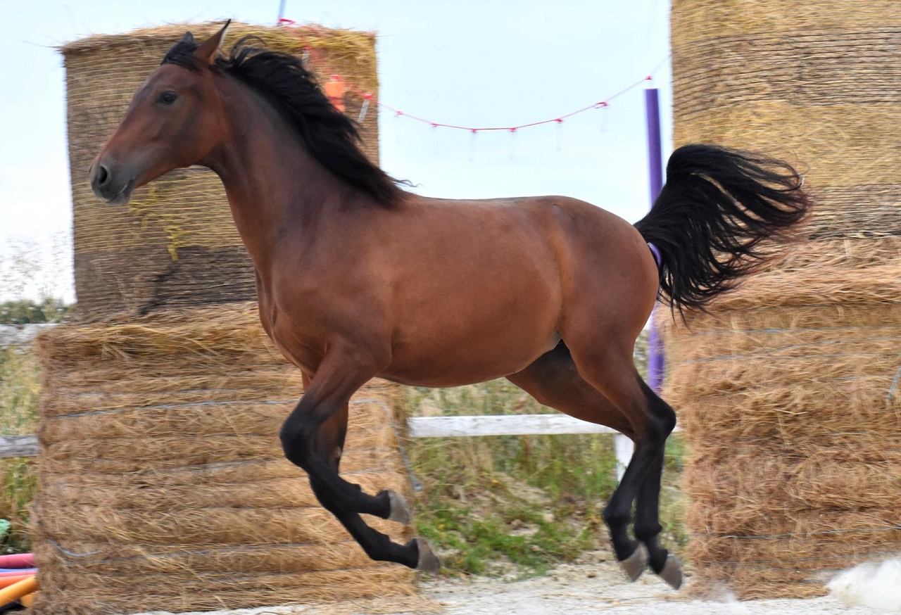 | Dire merci | Salut la compagnie! ça fait un bail que je n'ai pas mis de nouvelles photos de la troupe, alors je me disais que pour les vacances, il fallait remédier à cela ![]() Je vais donc faire bref en ne re-présentant pas à nouveau toute la troupe, mais en présentant juste les petits nouveaux (pour ceux qui voudraient des détails sur qui est qui, voici le site de l'élevage qui, normalement, est très complet: Lien )Mais auparavant, petit apparté sur le chéri de ces dames, mon fidèle Akanto, poulichon-d'amour, qui m'a permis de faire un joli cadeau de mariage à une amie, avec la complicité d'un ami photographe ![]() ![]() ![]() (j'avoue, on s'est plutôt fait plaisir à prendre des photos au galop, et dans le sable très profond des Landes c'était plus simple pour Akanto )la vidéo Lien Alors, sinon, les babys....que des mâles cette année, alors autant Eléa a innové, elle qui ne m'avait fait que des filles (Elégie, Faline et Hestia) auparavant, mais pour les autres, les purs-PRE, les filles étaient un peu espérées, j'avoue mais non, pas pour cette année, 3 poulains, 3 gars, c'est ainsi ![]() Alors sans plus attendre, je vous présente Império d'Auréa, né le 15 mars 2018, petit frère d'Elégie, Faline et Hestia Comme ses soeurs, gabarit 1/4 trait, mais pour le coup il a pris un côté chic et choc qui le distingue beaucoup de ses soeurs! mais évidemment toujours aussi gentil, un véritable ourson en sucre ![]() ![]() Lebrera était supposée talonner Eléa de près, mais c'était sans compter sur un avortement précoce et discret, et une re-saillie en août, en toute discrétion....fin mars, on savait donc qu'il y avait un polichinel dans le tiroir, mais on ne savait pas pour quand....elle a enfin levé le suspens le 8 juillet 2018 à 20h en nous présentant son 4e fils avec Akanto visiblement elle est contente d'elle, et a décidé de ne pas changer une équipe gagnante Je vous présente donc Ithaque, 10 jours aujourd'hui! (photo de sa naissance) ![]() ![]() Et le "nouveau", le premier fils de Calina (avec Akanto évidemment ), Invasor d'Auréa, futur grand cheval dans plusieurs sens du terme, mon préféré physiquement à ce jour ![]() ![]() *suite p1* Message édité le 21/09/20 à 01:55 Message édité le 25/09/20 à 23:38 |