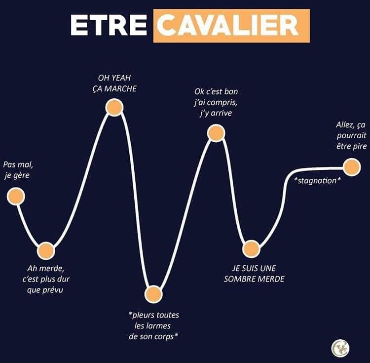 | Dire merci | Non, bien sûr que je ne suis pas heureuse de monter comme ça. Mais sortir de piste en étant satisfaite du tour, ou même d’une séance à la maison, ça me rend heureuse. Et le truc que je me demande c’est est ce que même en bossant, je suis capable de faire ce que j’ai envie, c’est à dire monter des tours propres sans faire de blagues à la jument. Et là où la question de vendre peut être envisagée, c’est dans le cas où même en me donnant toute la peine du monde je n’arrive pas à ce que je veux. Mais on n’en est pas là pour l’instant. Enfin de toute manière, si je préfère baisser les bras et vendre ma jument pour la « préserver », ça n’engage que moi... 95cm pour un cheval qui faisait 120 et qui aurait fait 130 s’il avait toujours été bien monté, c’est assez ridicule... Et il a fait ça les doigts dans le nez... Non toi tu ne l’as pas dis, et je n’ai pas retenu qui me l’avait dit, mais ça avait été écrit ici ![]() Le cheval fait des séances courtes, sur bons sols. Il ne travaille pas tous les jours. Il saute très très rarement à la maison, et quand il saute ce sont sur des petites lignes de gymnastique. Il ne va quasi pas dehors pour éviter tout sol dur... Je pense que c’est déjà pas mal.. |