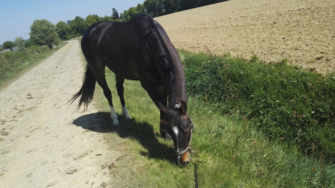 | Dire merci | Ah ben il suffisait de râler et c'est bon, la photo est passée ![]() NEWS: (suite et FIN) Arrivés dans le chemin de broussailles, je vois un chemin qui part sur la droite, qui ressemble à celui qu'il y a sur ma carte, et comme cette fois on a un peu le temps et pas spécialement d'impératif, je me dis qu'on va partir en exploration. Là je me retrouve dans des espaces de "landes de broussailles", c'est assez surprenant car ça change complètement du paysage de campagne qu'on avait aux alentours. On se croirait dans le sud, avec des hautes herbes et des tonnes de petits arbres a moitié secs.... Et PLEIN de chemins ![]() Et comme j'ai pas de boussole, je me retrouve assez vite perdue en fait ![]() Donc je continue dans les broussailles un peu au feeling, Apo me suit. On passe par dessus des branches, dans des fourrés, il est sage et il bronche pas. Et tout d'un coup, je commence à entendre des bruits dans les fourrés. Genre un animal. Apo l'entend aussi, et là pour le coup, je fais pas la maline. On a aucune visibilité, et le bruit est quand même assez fort. Genre animal assez gros donc, style biche ou sanglier... Apo est hyper en stress, moi aussi, du coup je commence à parler fort et faire du bruit, histoire de dissuader le je-ne-sais-quoi de venir nous emmerder J'essaie de trouver un chemin pour retourner sur la route. y'a pas moyen. En plus je ne sais pas où je suis, et Apo commence à me coller énormément prêt à me sauter dans les bras. C'est quand même hyper ridicule d'être totalement perdue dans 500m2 de broussailles ![]() Soudain, éclair de lucidité, j'ai ptet pas de boussole, mais j'ai mon téléphone avec un GPS, c'est encore mieux ![]() Du coup hop hop google map, hop ah ben ouais faut continuer le chemin vers par là, et puis au final, on fini par déboucher derrière la butte. Donc on fait un peu d'escalade - c'est là qu'on voit que franchement Apo n'est pas vraiment pas doué de ses cannes - et on se retrouve enfin de l'autre côté, dans un grand champs, sur un chemin que je reconnais On en profite pour faire une bonne pause brouting, vu qu'on est pas pressés. Apo ne s'est pas fait prier ![]() Ensuite on reprend le chemin de l'aller, en faisant quelques pauses de temps en temps. ![]() Ça se passe bien. On croise des voitures plus ou moins sympa, mais ça roulait un peu moins vite donc Apo ne chauffe pas. On ressaute le fossé de l'aller pour rentrer à la maison, avec plus de style cette fois, et Apo retrouve son paddock. |