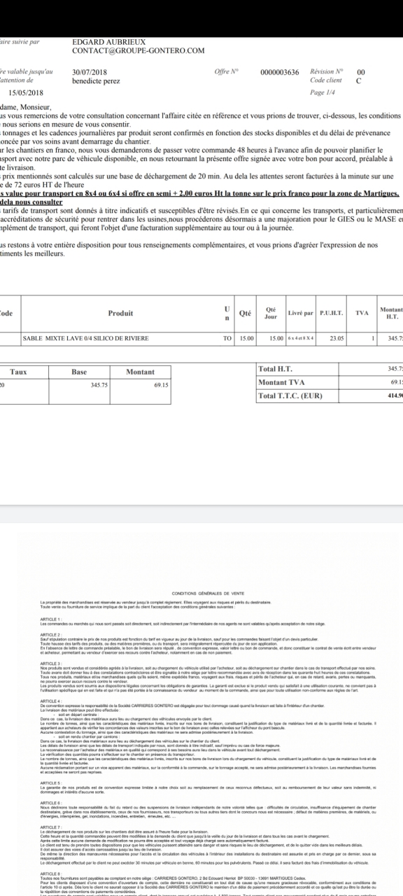 | Dire merci1 | Je t'ai mis le devis. Clairement moi je suis pas passée par des spécialistes équestres car toutes et je dis bien toutes les copines qui ont pris des sols pur siliceux s'en sont mordues les.doigts. Besoin d'eau a mort sinon c'est fouillant et ça vole. Trop d'épaisseur. Là aussi selon moi il vaut mieux moins et en rajouter que trop. |