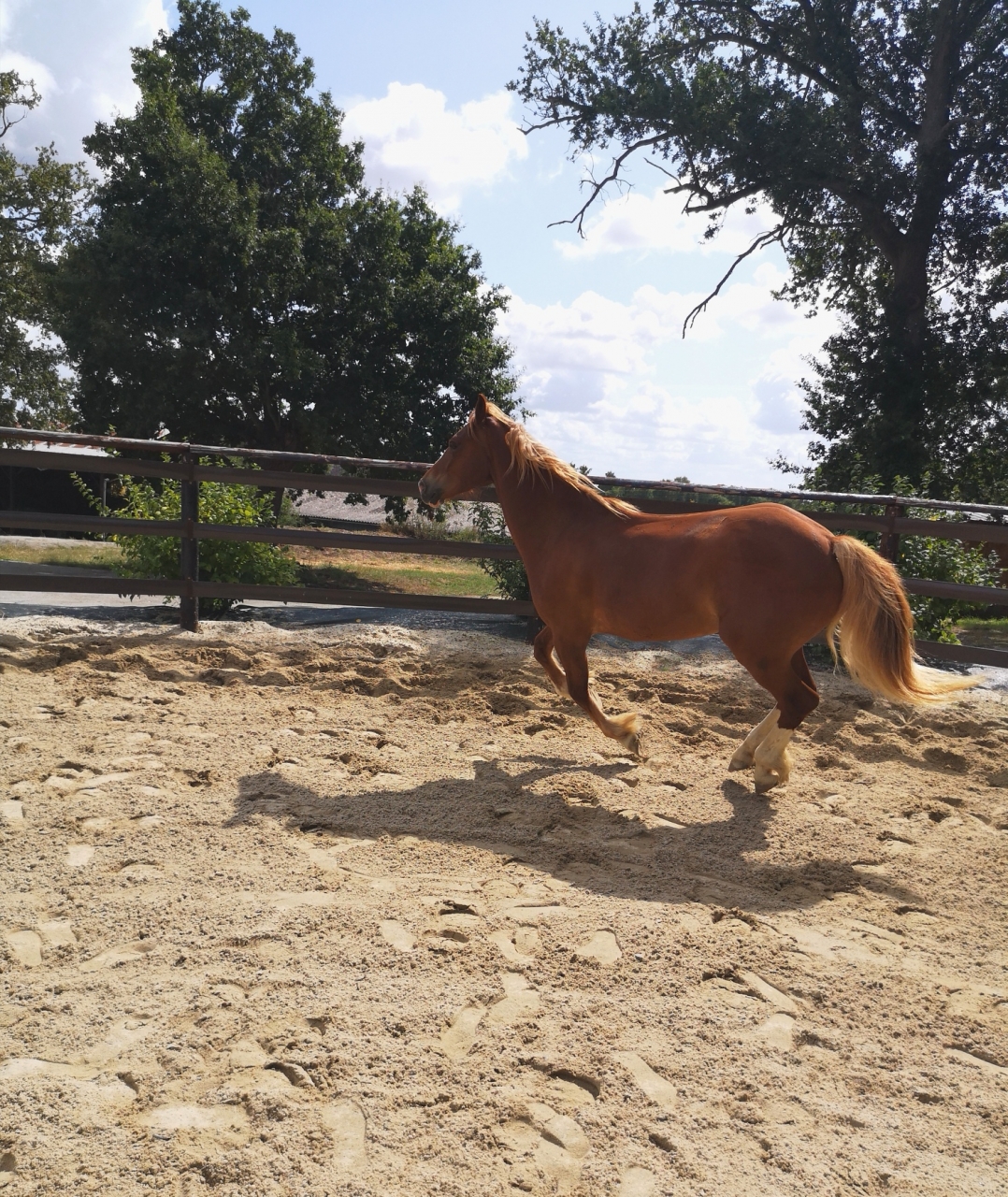 | Dire merci | Je suis d'accord avec tout ce que tu dis k.zel . Tu ne fais pas du tout connard paternaliste, ne t'en fais pas ![]() L'extérieur clairement le problème c'est moi. Et je vois très bien qu'il cherche un référent quand lui a peur et qu'il ne le trouve pas. Ça me désole parce que j'aimerai tellement lui offrir ce cadre là en extérieur pour qu'il soit bien dans ses sabots. Mais je suis pas prête à être détendu à 100% dehors pour l'instant. Je me force un peu quand même, après les séances je fais un petit bout monté dehors pour le faire marcher et ça va à peu prêt. À pied, les tours dehors ça se passe sans soucis, c'est vraiment moi qui bloque quand je suis dessus. Je fais des montagnes pour pas grand chose, ça me fatigue moi même En carrière par contre, je suis totalement l'inverse, limite trop détendue par moment ![]() Le travail à pied lui fait du bien et à moi aussi, énormément. Je suis épuisée après chaque cours, pas parce que c'est physique mais c'est que j'apprend tellement que mon cerveau n'en peut plus ![]() Je prend confiance en moi et ça se répercute partout. Je laisse le temps au temps, je ne suis pas pressée. Et la relation que tu décris avec les welsh, je trouve ça super intéressant. Je veux pas un cheval qui fait juste pour faire mais un cheval qui agis par rapport à la relation de confiance établi entre lui et l'humain. La aujourd'hui, j'ai fais un peu de liberté dans le rond de longe, j'ai pu obtenir des déplacements de hanches et d'épaule sans fuite. C'est peut être pas grand chose mais je trouve que c'est signe que notre relation a bien évolué au fil de ces derniers jours. ![]() |