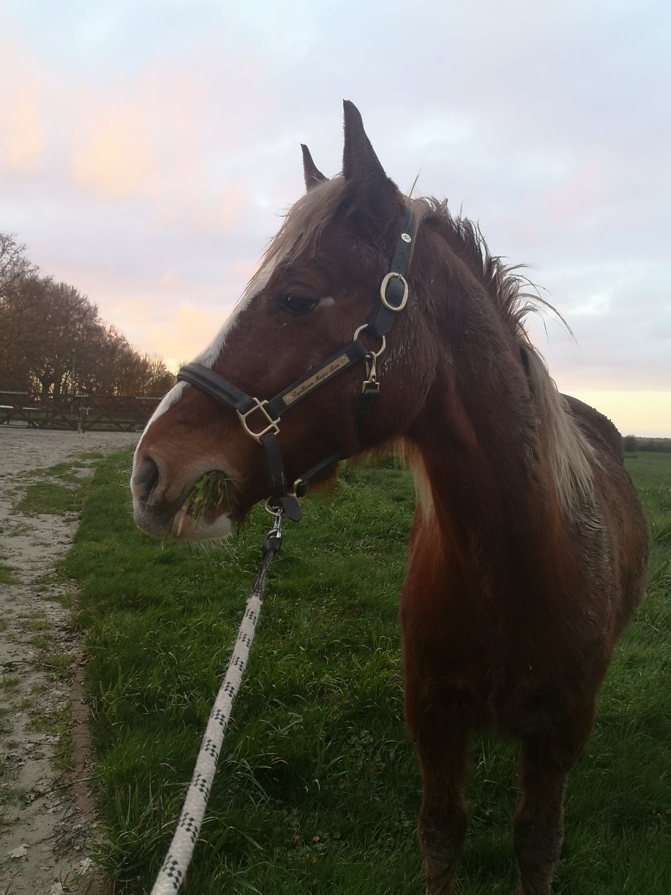 | Dire merci | La maladie m'ayant frappé pendant 1 semaine (grippe et angine youhou), j'avais pas vu le poney pendant tout ce temps. Dolly m'a dit qu'il avait perdu en état. Je pensais que muscle, il a décollé en poids aussi. Quand je suis revenue ce Lundi après mon absence, ça m'a un peu foutu les boules. Sam était apathique, vraiment pas beau physiquement, mou, éteint... Super. J'augmente la ration, huile de lin, magnesium. Le Mardi je repasse, toujours éteins dans le pré puis je le sors, c'est bon j'ai retrouvé le Samsam, il était tout foufou et physiquement plus joli. En 24h, c'est étonnant. A l'écurie, on essaye de me dire que c'est parce qu'il m'a pas vu pendant plusieurs jours mais j'aime pas penser que c'est parce que ma petite personne n'était point là que son moral était sous terre. Je reste à penser que c'était à cause du temps, du traitement des poux et qu'au pré en ce moment c'est pas la joie. On a refait du travail à pied cette semaine du coup, je dois revoir les bases. Je suis émotionnellement sensible ces derniers temps et un rien me fatigue, m'énerve, me faire perdre patience. Alors même un pauvre déplacement des hanches, je m'agace dessus. J'en ai marre de tout et Sam aussi. Hâte de reprendre les cours avec Dolly! Je l'ai longé deux fois, il a été très bien et a bien bossé. Samedi on a fait une petite sortie extérieur à 4, il a accepté d'être devant un petit moment, très fier de lui! J'ai également pris un abonnement Blooming riders (anciennement the tack room), pour avoir des pistes de travail et des sources d'informations supplémentaires. Et mon boulot prenant fin d'ici deux semaines, on entame un programme de remise en forme pour moi et le poney avec la gérante de l'écurie et le sien, car on s'est calé quelques échéances de randos. Notamment fin avril. |