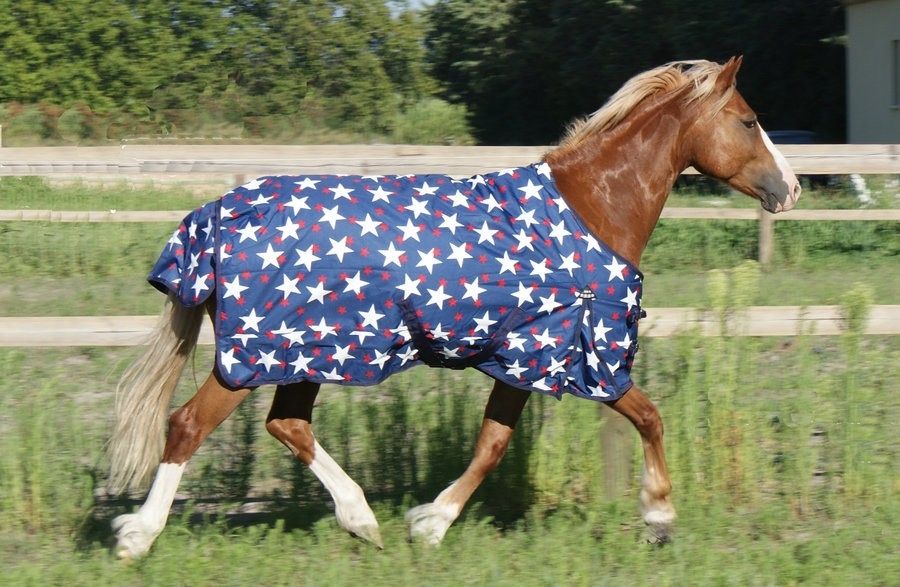 | Dire merci | J'ai la même couverture en imper. Elle est très bien ! Et au moins tu repères ton cheval facilement dans un troupeau |