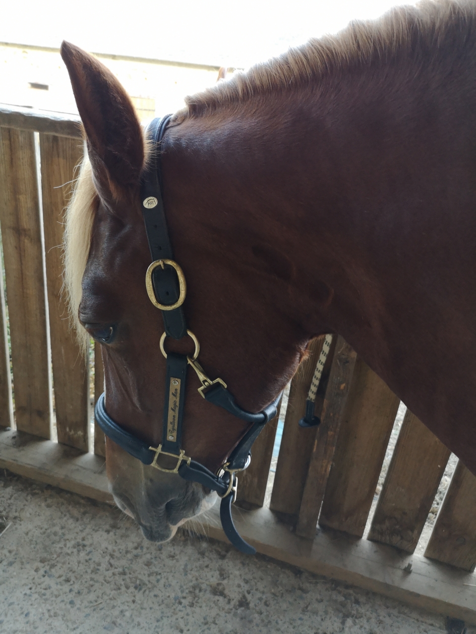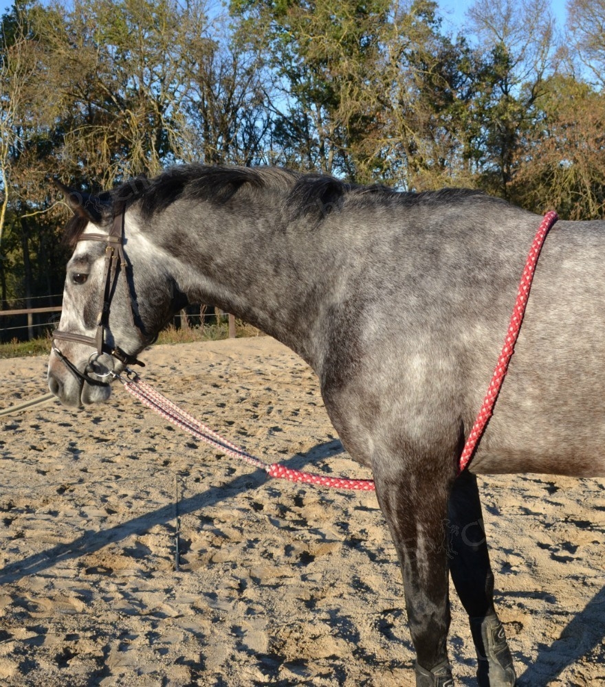 | Dire merci | Merci pour la précision du nom. Je crois que je l'avais vu passer comme ça en effet. Oh bah je suis d'accord pour le nom. C'est n'importe quoi. Faut avoir assez de recul ensuite pour comprendre et l'utiliser sans se fier au nom. Mais bon.... Quand on en voit certains hein. Un "copain" cavalier l'avait acheté pour se donner bonne conscience du genre "non mais l'enrenement est etho, donc c'est que c'est bien". Puis il serrait à fond le bazar, le cheval n'avait pas de liberté d'action. (et la oui les pressions sur le dos peuvent être conséquente vu comment c'était serré) Comme je le règle assez lâche, j'ai du mal à voir où il pourrait y avoir pression "néfaste" aussi. Ça m'a aidé à faire comprendre à Sam qu'il avait le droit de baisser la tête et que c'est plus confortable pour lui d'être dos tendu. Maintenant il en plus trop besoin, car il a comprit. Je le met juste de temps en temps pour approfondir le travail à longe. |