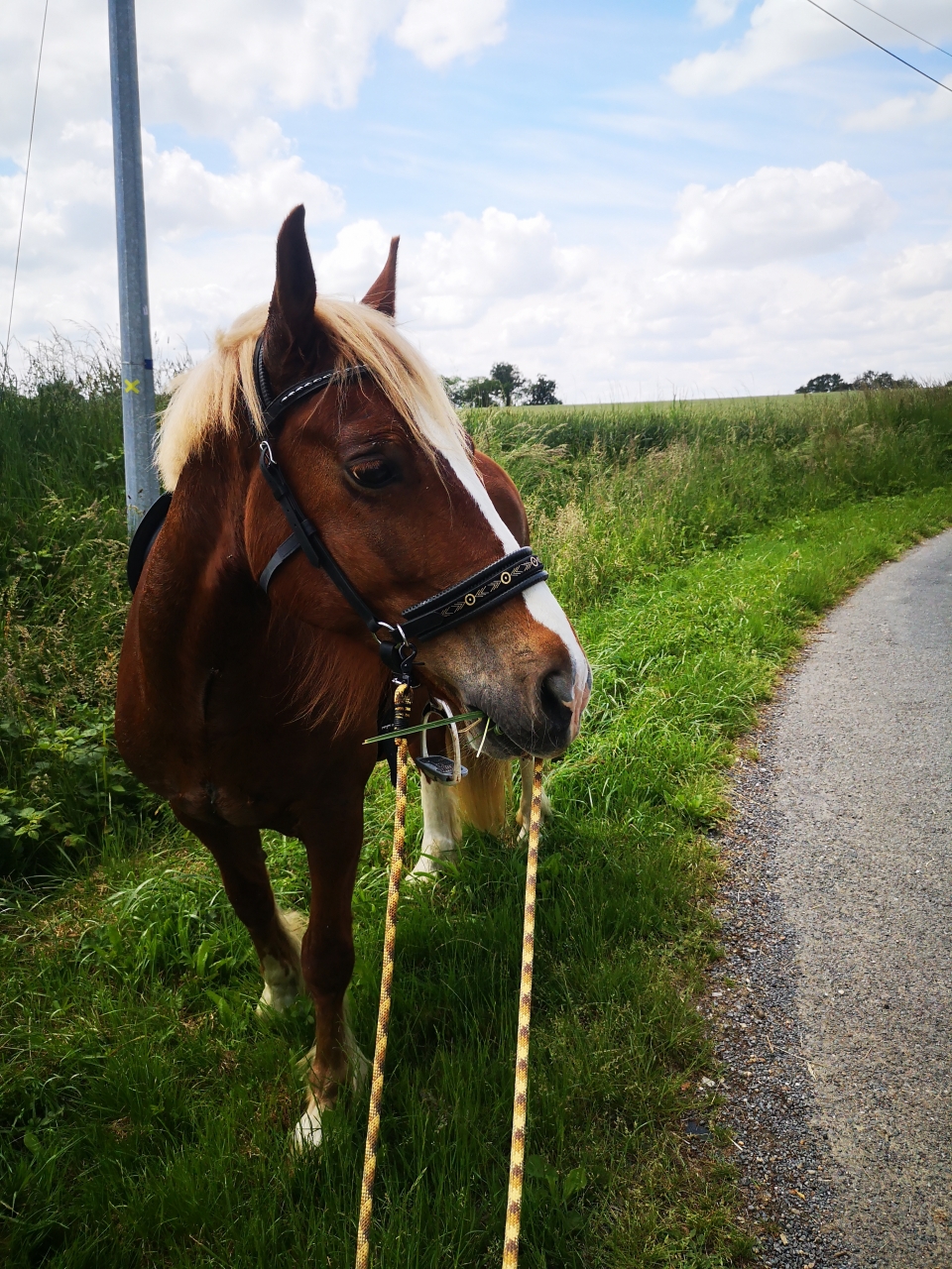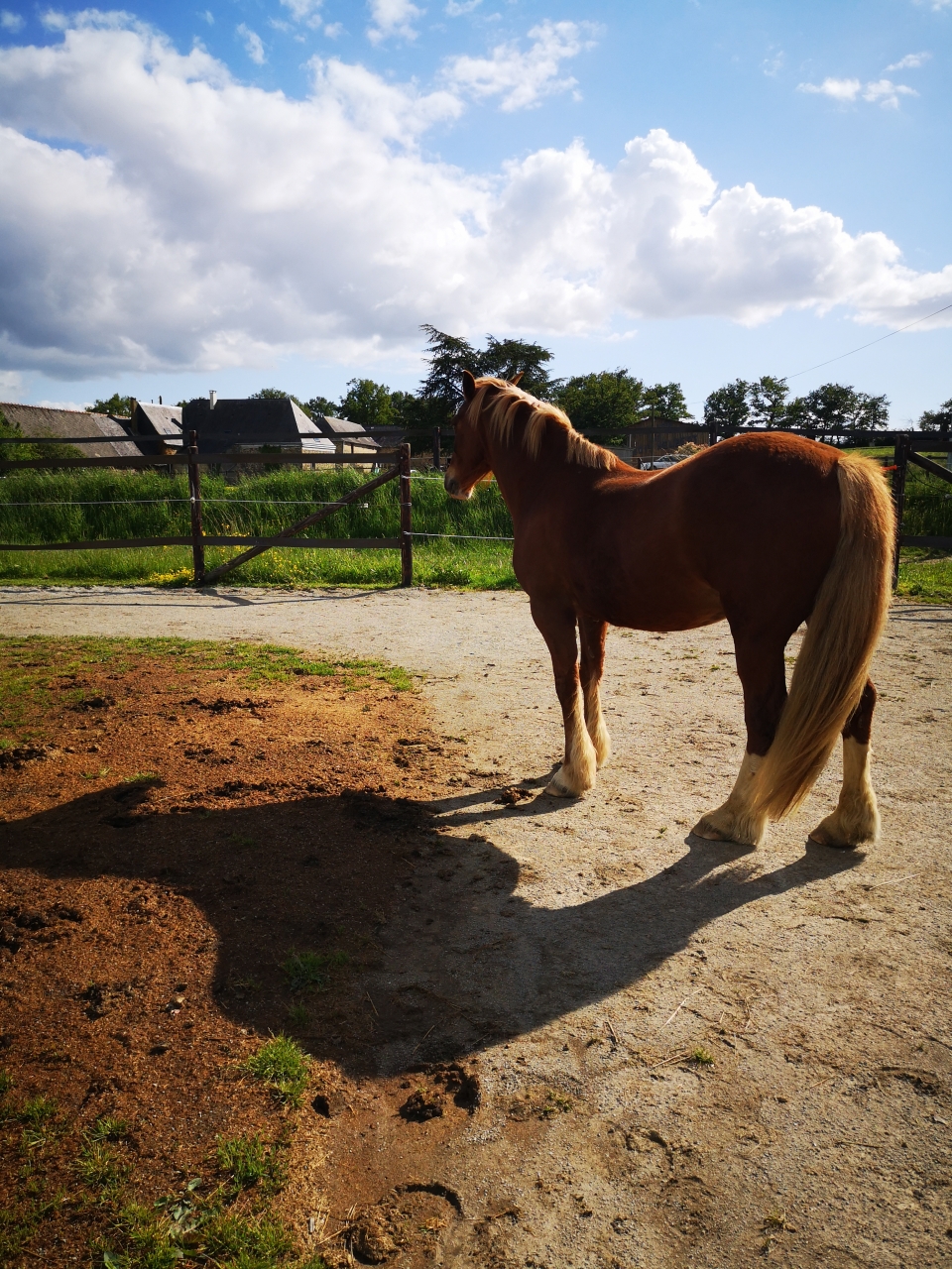 | Dire merci | C'est vrai que le cadre est super chouette ! J'adore la vidéo de Sam qui dort contre la barrière. Il est malheureux, ce pauvre poney Il a fini sa mue ? Je demande, parce que mon Welsh Cob, non, et bien loin de là même (bon, personne ne l'a finie chez moi, mais Cawr est vraiment encore fort poilu et ne perd quasi pas) |