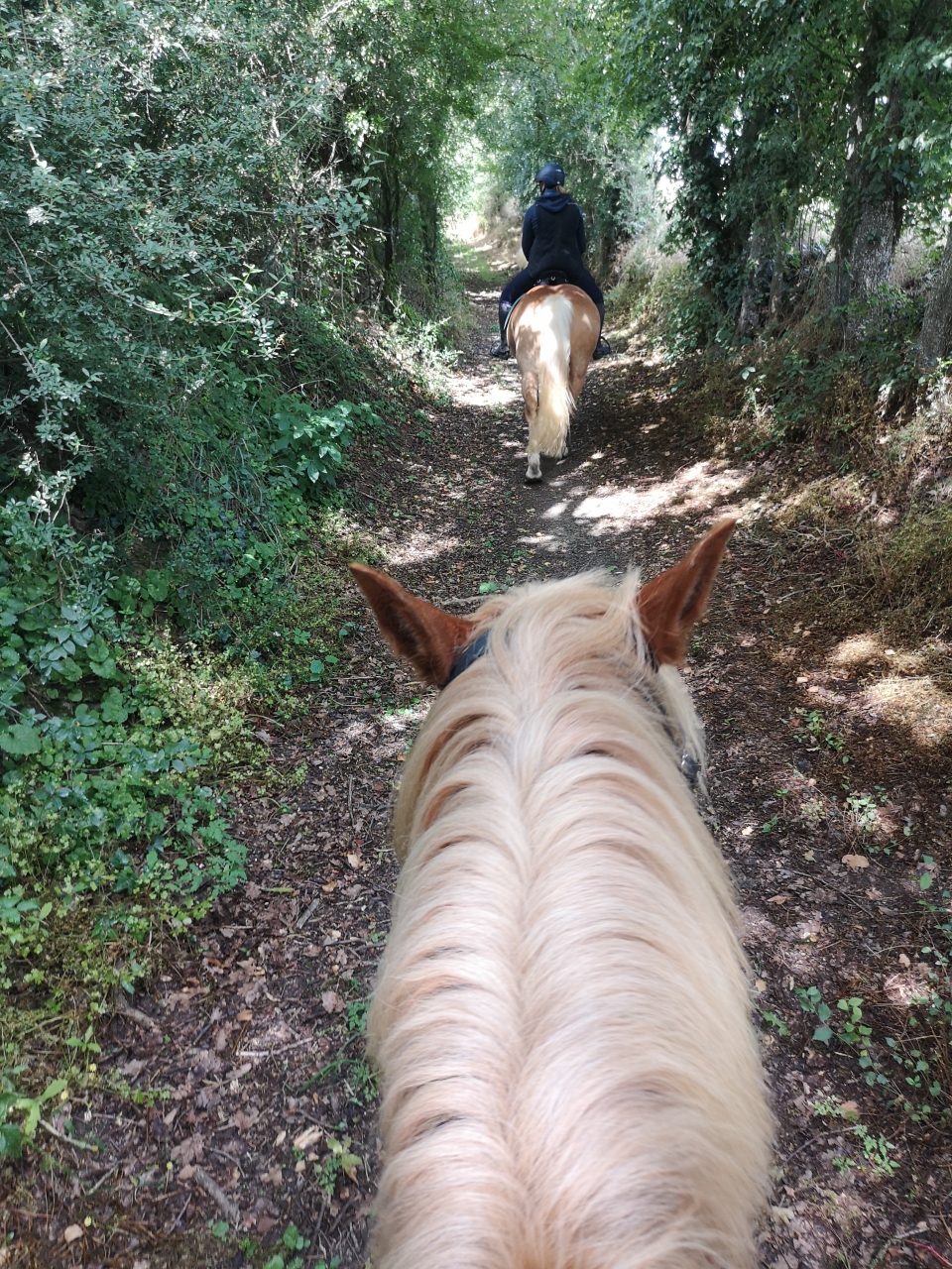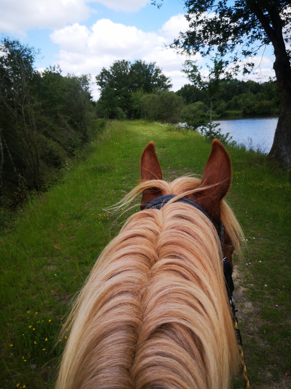 | Dire merci | Hier nous avons eu un cours à pied avec Dolly. Comme je lui ai dis, moi et Sam on s'entraîne dans notre mollesse. C'est infernal. Quand il a pas d'énergie j'en ai pas non plus et du coup il en a pas plus Donc il était un peu mou du genou, moi aussi mais les exos ont été bien réalisé tout de même. On a travaillé le cercle en bougeant dans la carrière, je devais rester sur ma ligne et lui être attentif à mes déplacements. Ensuite on a commencé les déplacements latéraux au trot, avec de l'énergie ça sera mieux Aujourd'hui j'ai profité du soleil pour aller aux étangs, 3h de sortie pour Samichou et moi. Il a été super mignon. Peur de quelques trucs mais il a bien su m'écouter et redescendre en pression. On a pu galoper à quelques endroits, c'était chouette. Arrivé aux étangs, y'avait un peu de monde, alors je ne me suis pas eternisee. Ça plaisait pas trop au poney alors j'ai pas voulu l'enquiquiner de trop avec ça car déjà, il prenait bien sur lui. Puis on est rentré sur un pas de course car Monsieur voulait rentrer au bercail ![]() C'était un peu la jungle un moment. Et encore y'a pas les chardons géants sur la photo ![]() Au bord des étangs. On a galopé sur un chemin à gauche, une belle ligne droite ! ![]() ![]() Sur le retour ![]() Fatigué le bonhomme. J'étais descendue plus tôt pour finir à pied ![]() Voilà voilà ! |