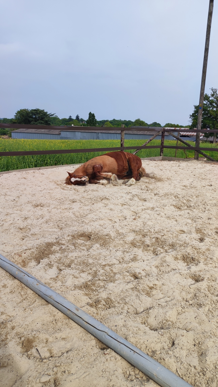 | Dire merci | Oui ![]() lundi, il s'est cassé la tronche sur le ciment quand je lui ai prit le pied pour le parer. Il dormait je l'ai dérangé. Il a rien par contre mon genou ... Je pense qu'il envoie des signes pour me mettre à mort Ou sinon ma maladresse déteint gravement sur lui En tout cas, il est fatigué, la mue, l'herbe, les variations de températures, il est cuit en 2/2. Mais il tient les petites séances de longe et sortie, alors j'en profite. Faut bien le remettre en route mais le post crise, c'est vraiment compliqué même s'il va bien là il a prit vraiment cher.... |