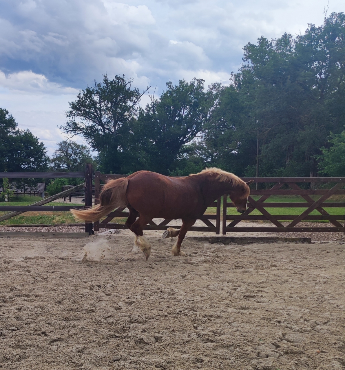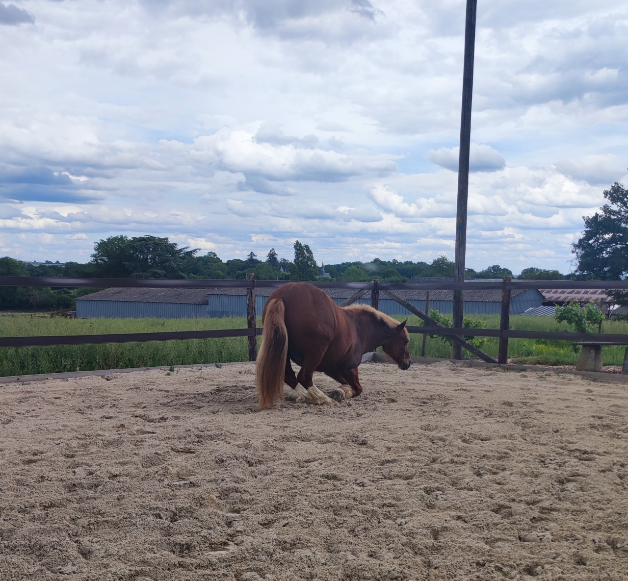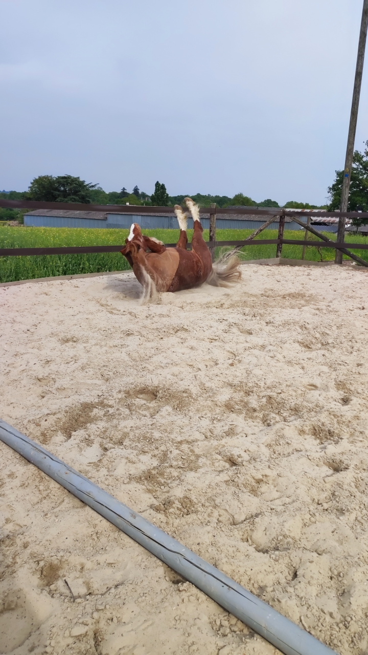 | Dire merci | On va vendredi faire fibro + lavage pour être fixé. Je lui ai fais une petite longe avec barres au sol, il a toussoté mais rien de méchant. Il a la forme, tellement qu'il est allé se coincer un antérieur dans une palette 🙄 (il a bourriné pour rentrer dans le box a foin...) Ça le derangeait pas il allait partir avec la palette dans le plus grand des calmes. On a coupé a la scie (la palette pas le pied )Je vais l'envoyer à findus ça ira plus vite et ça me coutera moins cher ![]() |