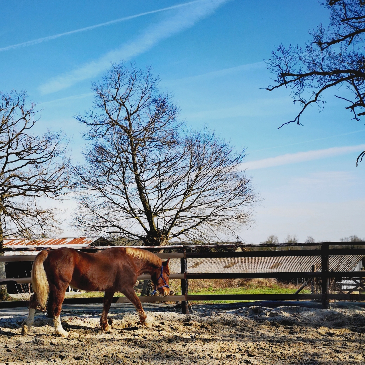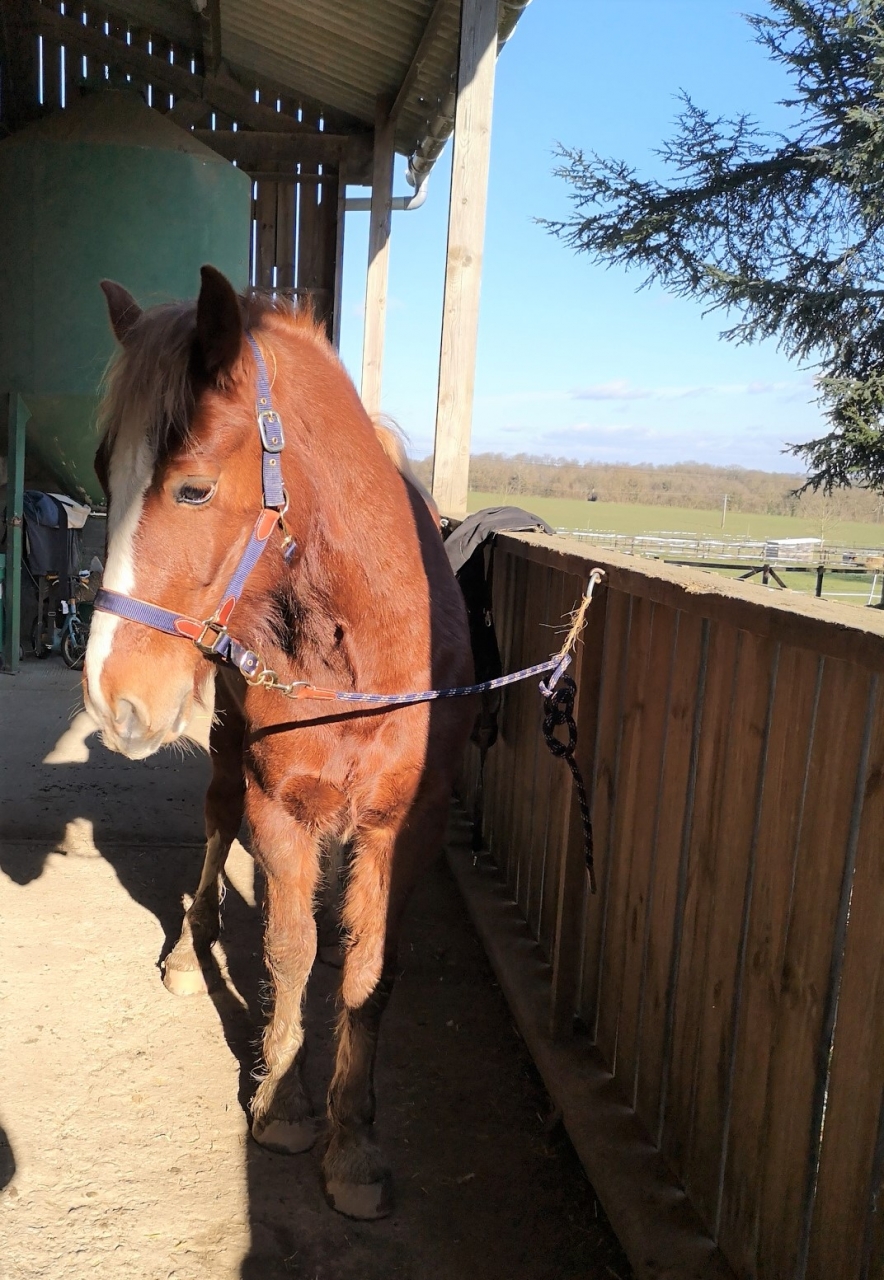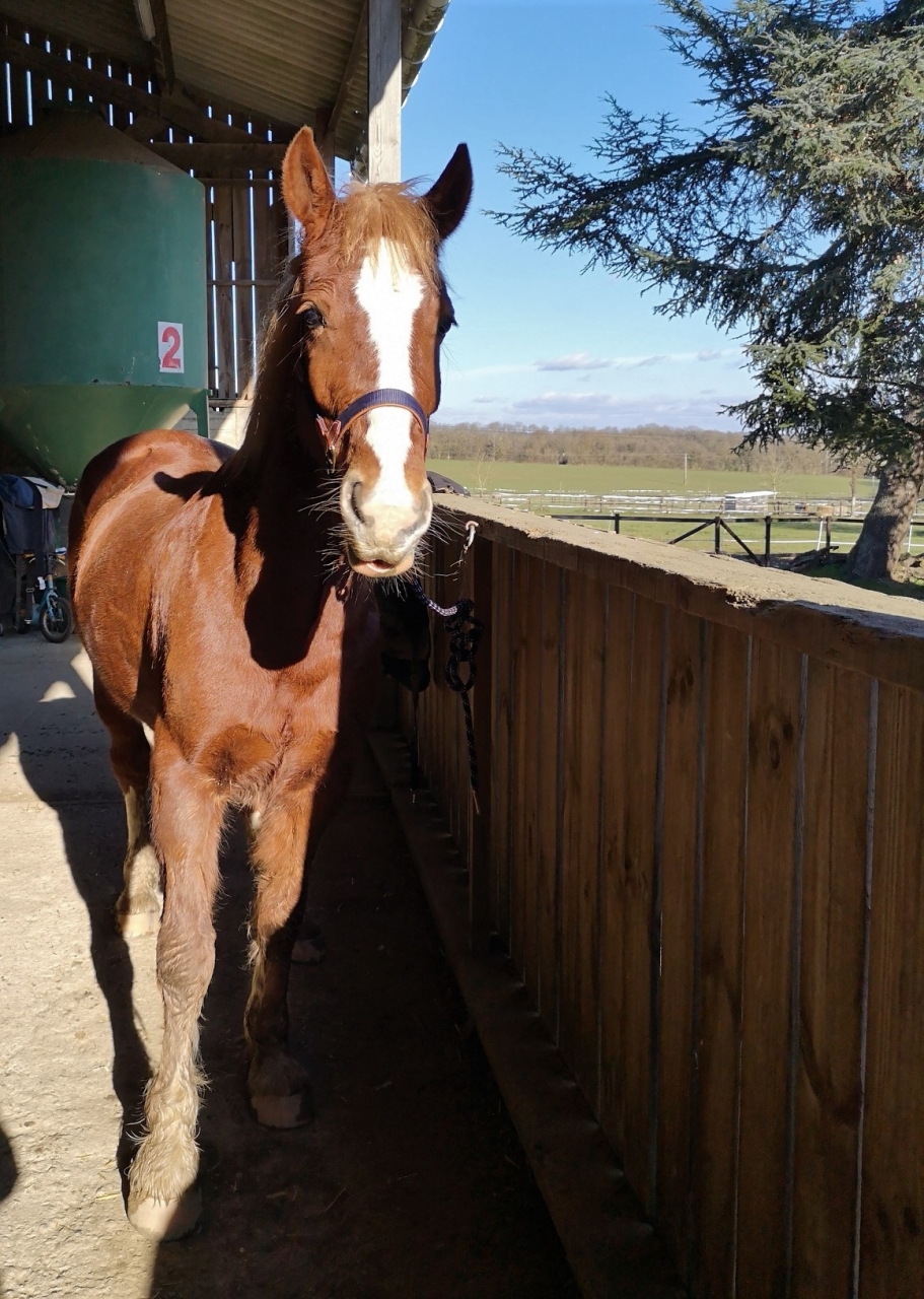 | Dire merci | Sam a rejoint le troupeau aujourd'hui. Après 15 jours en solitaire, la gérante l'a mit avec un groupe de 5 chevaux dans une pâture plus sympathique que là où il était. Il y a plus d'herbe et moins de boue. Puis surtout, des copains ! Je suis passée le voir vite fait ce soir. L’indépendance est prise, lui qui venait dès que j'arrivai, là c'était du "t'as rien à bouffer ? Bon, bah tchao" Je retourne le voir jeudi mais là j'en ferai quelque chose. Peut être de la longe pour travailler la mise sur le cercle. |