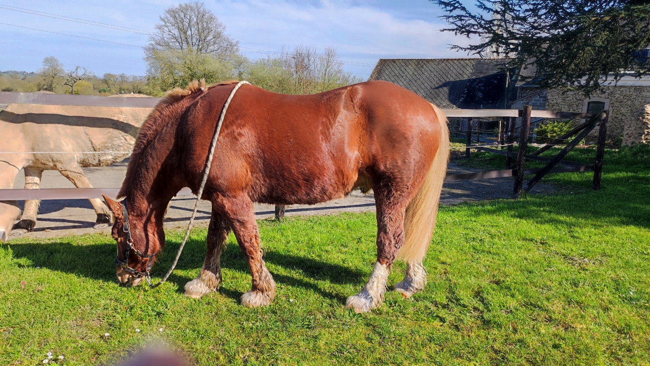 | Dire merci | Les pieds sont ok, RAS. La podologue est passée y'a pas longtemps, rien a dire. Et vu l'humidité je m'attendais a des trucs de merde mais rien aux sabots. Sont beaux et sains. J'ai pas pris de photo des zones mais y'a pas de croutes, c'est lisse, y'a plus de poils et c'est rosé mais pas inflammé. C'est tout. Sur une y'avait juste un peu de peau morte mais pas grand chose. . Alors ça se trouve, autre problème de la boue, ça peut être quelque chose de plus haut. Vu comment ça glisse et les efforts qu'ils doivent faire pour marcher dans leur champs, peut être que y'a un truc qui coince et y'a une réaction plus bas. (Je pense a l'un de mes chiens qui a eut une sciatique et il a perdu des poils le long du passage du nerf sur la patte) Par contre c'est symétrique, sur les côtés des paturons. Le gauche est plus pris que le droit. (Mais en ostéo le côté gauche est souvent pris et en shiatsu aussi donc ça ne m'étonne pas) Puis c'est la zone où la boue stagne le plus. Pour l'instant je suis plus côté stagnation de la boue en première idée vu la tronche. C'est la première fois qu'il me fait ça, pile l'année ou je peux pas venir régulièrement lui nettoyer les petons. J'ai montré a la gérante aussi, et elle pense comme moi. Et sinon côté santé tout va bien, y'a des jours je pète la forme et d'autres ou j'ai l'impression de crever mais c'est surtout que même si j'ai l'énergie je dois le ménager car derrière je le paye en douleurs bassin/dos. Juste sortir le poney du champs et marcher dans la boue ça suffit à me fatiguer. Enfin lui il est content , on fait une pause tous les mètres et il bouffe de l'herbe J'ai pensé à toi tout à l'heure en démêlant le capillaire fou de Cawr, je me suis tâté de lui faire la coupe à Sam Ça m'a sauvé cet hiver mais bon ça serait con de raser cawr maintenant, on est censé aller vers les beaux jours 😬 |