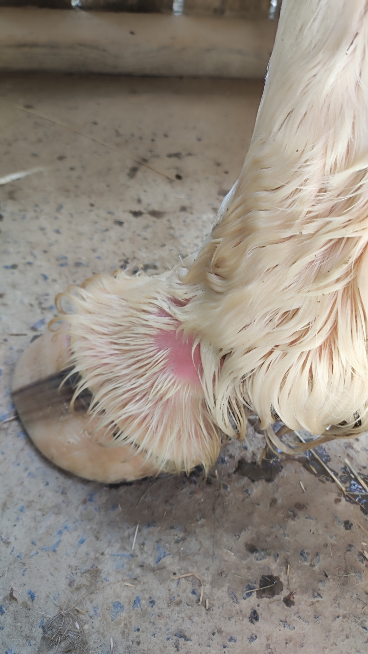 ça ne fait pas gale de boue car pas de croutes, il ne boîte pas, ce n'est pas engorgé. Je tripote, il dit pas grand chose, c'est pas chaud.... Donc pour le moment, je suppose que vu les couches de boue qu'il a aux petons, la peau ne respire plus et avec l'humidité, ça lui fait une réaction. L'avenir nous dira