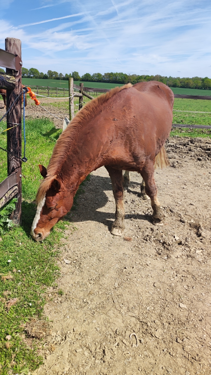 | Dire merci | Vu que c'est le calme plat et que mon mari est en vacances, j'ai pu aller a l'écurie voir mon petit poney qui me manque quand même. Et j'ai un regain d'énergie donc j'en profite un peu. ![]() .Il a été vermifugé jeudi, ça lui a tiré un peu dessus. Et le panier, la gérante lui a retiré ce matin. On lui remettra quand le temps sera un peu plus stable ou si changement de prairie. J'ai pu lui donné un coup de brosse, il a apprécié car oh miracle, il mue en avril (bon c'est pas la grosse mue mais il perd plus que les autres années) Ça nous a fait plaisir a tous les deux de se voir en tout cas Bon je lui ai dis que normalement c'était quand même la vraie dernière fois avant l'accouchement |