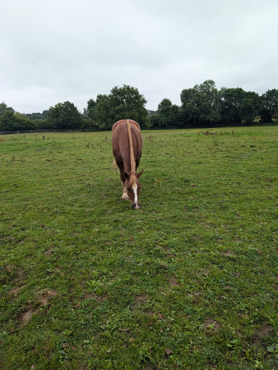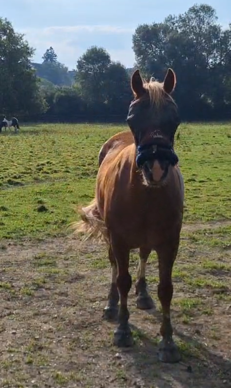 | Dire merci | Mon mari est en vacances. Je peux aller a l'écurie..... on va sortir du pré sam ! Hmhm. On avait pas eu assez de PLUIE tiens. Et quand il n'y pas de PLUIE, nous vivons dans une SERRE TROPICALE qui annonce les ORAGES. Puis quand il fait SOLEIL, je ne peux pas aller a l'écurie. Du coup... Ben ... On fait rien. ![]() ![]() ![]() On lui a retirer le panier pour quelques jours, il dépoile sur les tempes a cause du masque + licol. Puis toutes façons avec ce temps MERVEILLEUX, l'herbe n'est pas riche. (Oui j'en ai marre ) |
