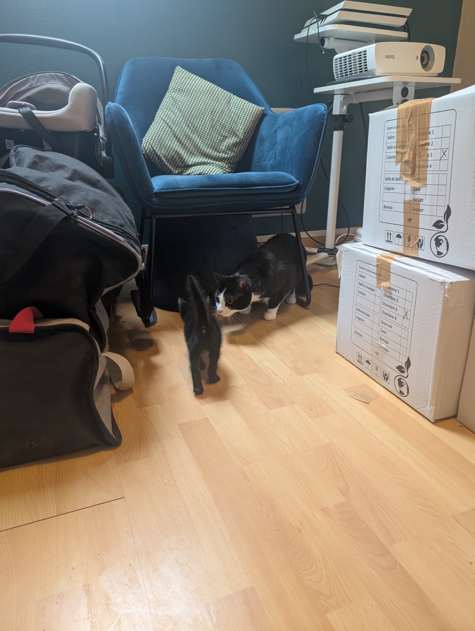 | Dire merci | Nooon, c'est trop drôle, j'ai quasi la même photo ici quand j'ai adopté ma petite noire en ayant déjà un adulte noir et blanc erzebeth : moi j'aimais bien Scarabée, tu le sais, mais dès que c'est chelou, ça me plaît, on le sait aussi |