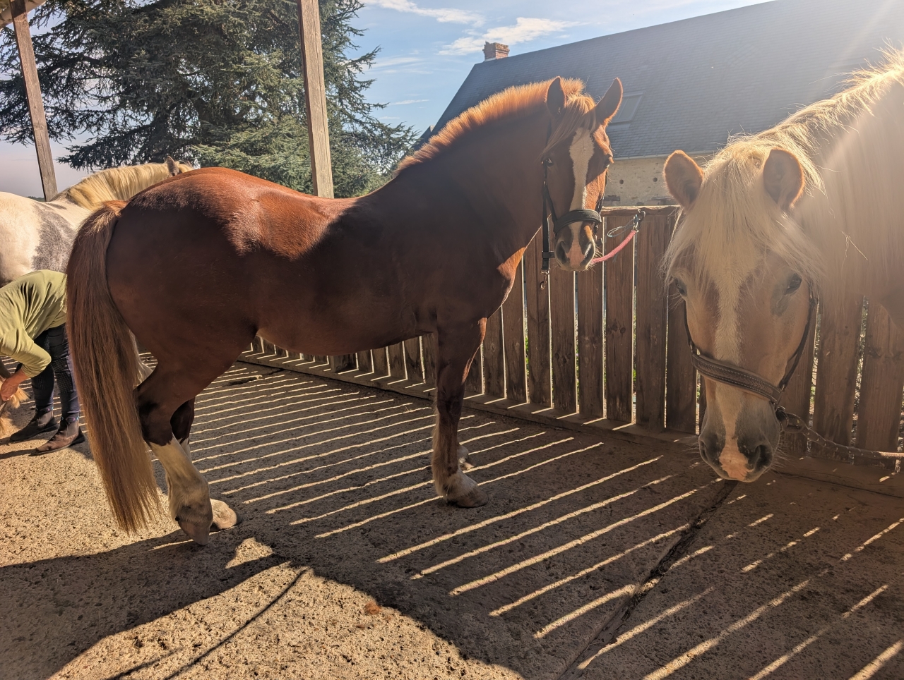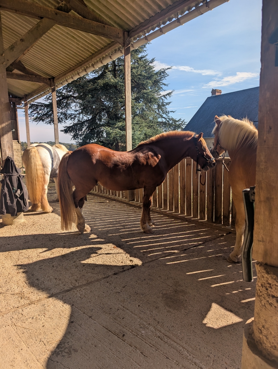 | Dire merci | C'est pas compliqué de monter plus que ses deux ans au pré Je le monte plus oui après je ne suis pas très régulière. On essaye de composer avec l'emploi du temps. Il a eu le droit de sortir en début de semaine aussi mais a pied. Heureusement il est mimi, parce que pendant 15 jours des fois il me voit pas et d'un coup je réapparaît et je lui fais faire des trucs Côté ligne, il a bien maigri, il est plus démusclé que gros en ce moment, il y a encore du gras mais il est plutôt dans sa morpho normale que obèse. Déjà quand il marche on voit ses épaules qui bougent, ce qui n'était pas le cas depuis longtemps |