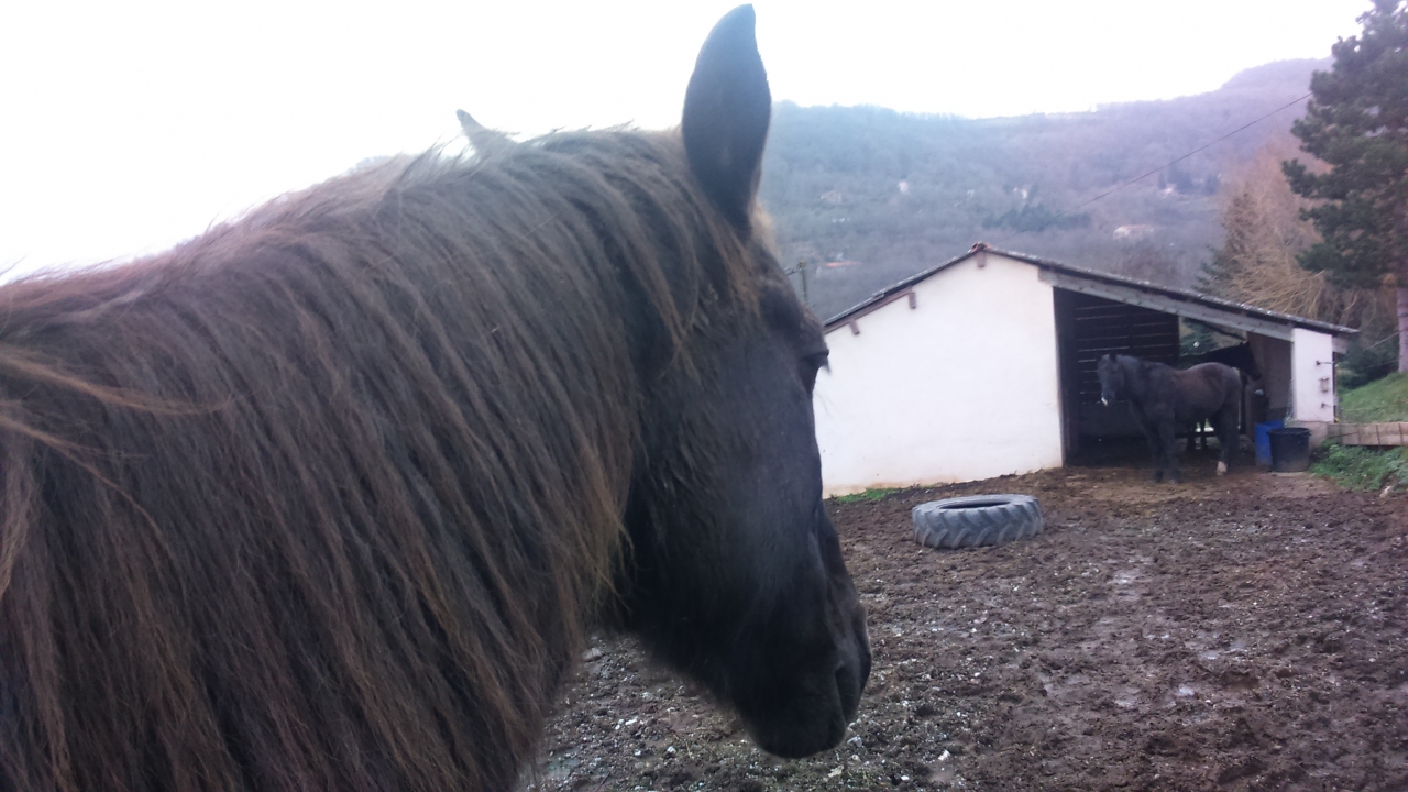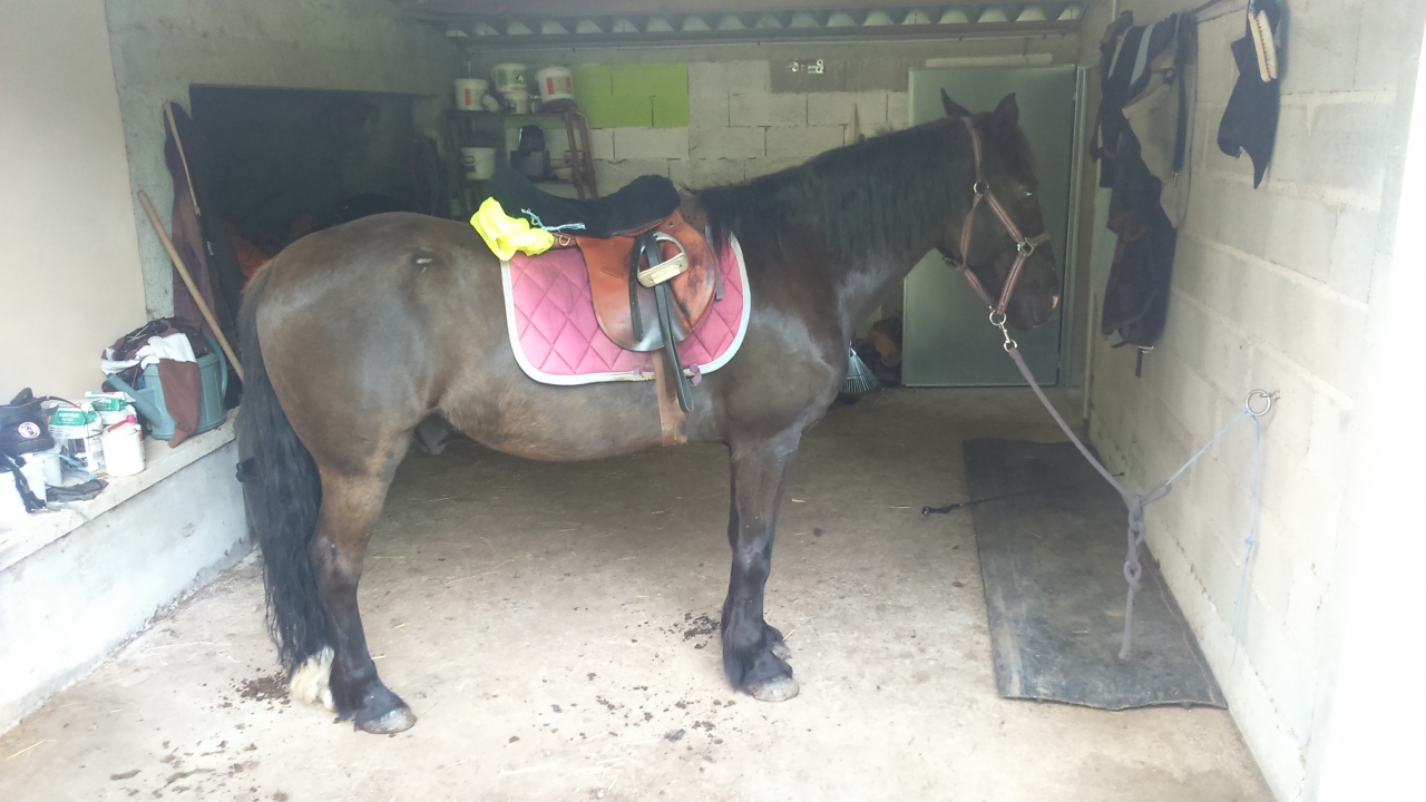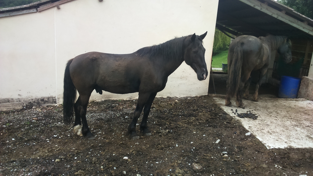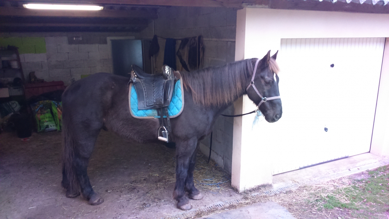 | Dire merci | Bon on va essayer d'être intéressants alors ! Sissou pourquoi j'en sais rien... en gros sa vie c'est: saillie ds le sud à l'arrache sûrement sans trop reflechir au produit que ça pourrait donner. Mon amie le voit poulain et craque et puis elle cherche un cheval pour sa fille. Poulain siro se retrouve ds le coffre du kangoo jusqu'à la maison, débourré sans l'être le moment venu on lui colle la selle,le gamin de la famille en equipement moto total sur le dos et zou dehors au cul des copains... Il grandit comme ça, enchaine les dps qui le bosse ds ts les sens (les mauvais et les bons mais il a bon dos et est brave!) par contre il fait toujours la gueule et est infecte ac les chevaux inconnus. Notre première rencontre se solde par un coup de poing ds le nez pr Mr puisqu'il m'a chargé ds le paddock alors que je venais chercher mon cheval nouvellement en pension chez lui...bref les choses se sont tassées. Et j'ai déménagé ac mon cheval, j'ai commencé a le monter qd je descendais en WE chez mon amie. 3 ans plus tard elle doit s'en séparer pour raisons familiales et financières et me propose de me le donner.. Et voilà Niveau morpho il est particulier, niveau caractère, il est imbuvable pour les non initiés, terrifie pas mal de monde et de chevaux mais qd on prend le temps, il a un coeur enorme, reflechit bcp, est courageux et intelligent.. Le pote ideal de rando (qd il est seul) en fait il a pris tout ce qui fallait ET tout ce qu'il ne fallait pas de l'anglo et du merens... Bon sinon auj temps pourri donc RAS si ce n'est 6 brouettes de fumier ! Ça promet !! |