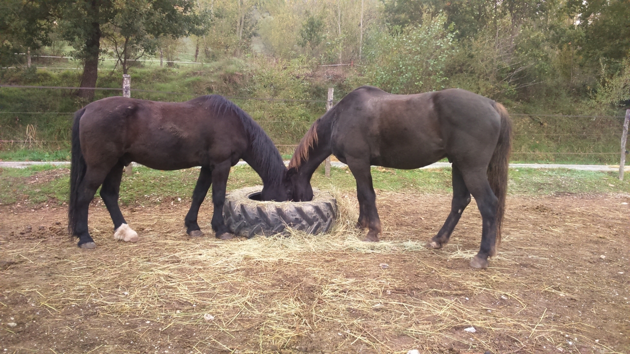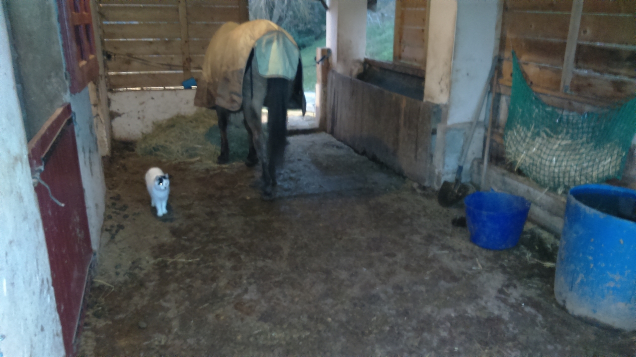 | Dire merci | Cet apm (enfin 16h...) je prends un peu le temps pour chouchouter un peu mes gros. Du coup, pansage en liberté pour Oraclou ds le paddock,on a toujours fait ça, c'est notre moment à nous,il se place à la demande,me montre ou gratouiller au passage bref c'est notre petit kiff... L'utilité du licol... ![]() ![]() Ensuite idem ac Sissou mais pour lui c'est moins evident, on sort du cadre "aire de pansage, du coup il givote, fuit la brosse. Bref on travaille ça.. Par contre une fois laché il me lache plus et donc j'ai mes deux glues collées à moi,pas evident pour les photos. Je suis contente Oraclou reprend de l'état mais alors dos degueulasse, complètement démusclé, abdos noyé. Bref y a un serieux boulot de remusculation à faire... ![]() ![]() Apres tout ça corvées habituelles: box, eau, nourriture...du coup je vous fait visiter leur petit monde à eux La dalle béton entre l'abri et le paddock, mon gros investissement anti boue de 2018, j'en suis ravie et eux aussi, ça nous a changé la vie ! ![]() Ensuite le fief de Loupette pour ses repas avec son filet de paille et le chat toujours ds ses jambes ! Ici on a fait tous les bardages en bois, peté la mangeoire à droite (ou il y a le seau bleu), changé le toit qui fuyait et refait la porte (mais pas visible sur la photo) ![]() L'abri de Nina donne sur les 2 boxs d'Oracle et Siro ![]() Ici on a refait la porte du box d'oracle à gauche, séparé le box en 2 du coup, pété la fenêtre de Siro à droite qui est devenu une porte et dallé en beton aussi le printemps derniers (30 ans de fumier à décaisser...wouaaaaiiiis) Ils sont enfermés en box le soir et les jours de pluie uniquement pour manger sinon acces libre h24 Voila on a finit cette année la partie écurie apres 5 ans d'aménagement, il me resterait des abreuvoirs automatique à mettre mais je garde mes sous pour autre chose ce n'est pas une priorité. Voila pour la première partie, me reste encore à vs montrer tout le reste pour un jour ensoleillé !! |