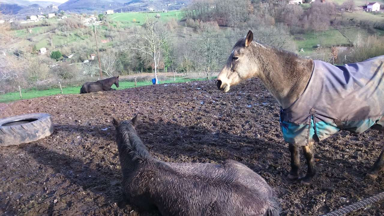 | Dire merci | Pas de cheval ce WE...enfin si mais pas à cheval... En gros nettoyage des boxs, aller chercher et decharger 240 kgs de foin en attendant...le reste... Recuperation d'un murier platane que j'ai prévu de planter a proximité du paddock pour l'ombrage cet été... Mais surtout 2 jours sans dégel et c'est parti pr la galère d'eau, des bidons, les seaux ds la baignoire... Ah si, j'ai voulu longer Oracle en pensant que ma carrière en herbe serait pratiquable...les sangliers l'ont entièrement retournée, elle est pleine de trous... Du coup ça s'est transformé en : ![]() Pour Siro : il n'a plus de fièvre mais " froufroute" tout le temps,a le nez qui coule toujours transparent et je le sens un peu fatigué, il ne finit pas toujours son foin. Mais Oracle semble se réguler aussi en ce moment...mais vu le froid d'aujourd'hui j'ai décidé de le couvrir...le laisser convalescent sans couv sur des nuits et jours en température négative me semble irraisonnable... Voila avec tout ça moi je suis... Fatiguée... |