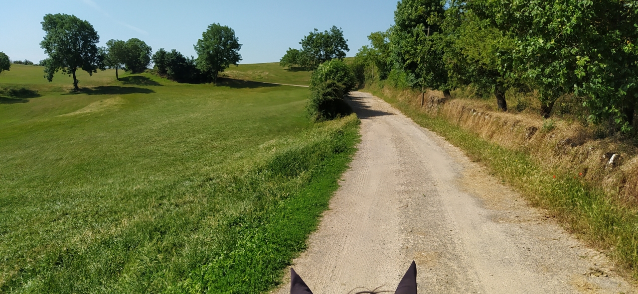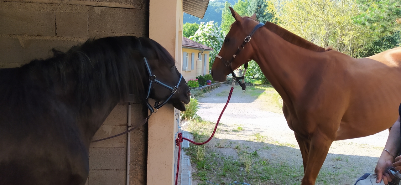 | Dire merci | irisetquiara39 je suis ds le Sud Aveyron, j'invite qui veut à venir partager nos balades ![]() Pour son jarret on présume à 80% qu'il se fait ça en se roulant ds son paddock car qd il est H24 à l'herbe il cicatrise et ne se blesse plus. Il ne dort jamais ds son box et il y a accès tte l'année et il ne blesse que l'été qd le sol du paddock est sec ! Normalement je reçois les protéges jarret auj' et heureusement car ça urge ! nezlaine oui temps parfait avec juste ce qu'il fallait d'air ! Pour la piste de galop j'ai lâché l'affaire, pas possible de négocier un accès ponctuel et en plus on l'a longée avant hier à cheval et grosse entourloupe : ts le super revêtement sol en buis s'est barré !! On se trouvera des pistes de galops pendant nos balades,on trouve de beaux boulevard galopants en prenant le van ! |