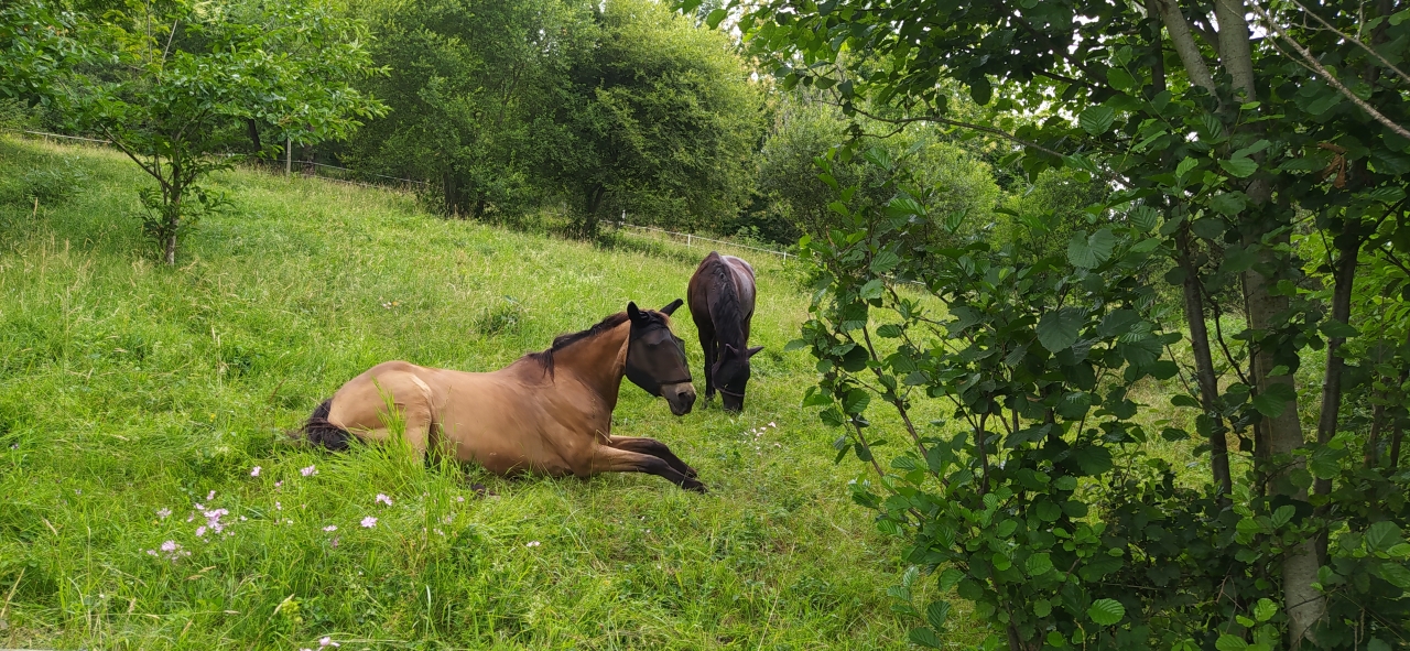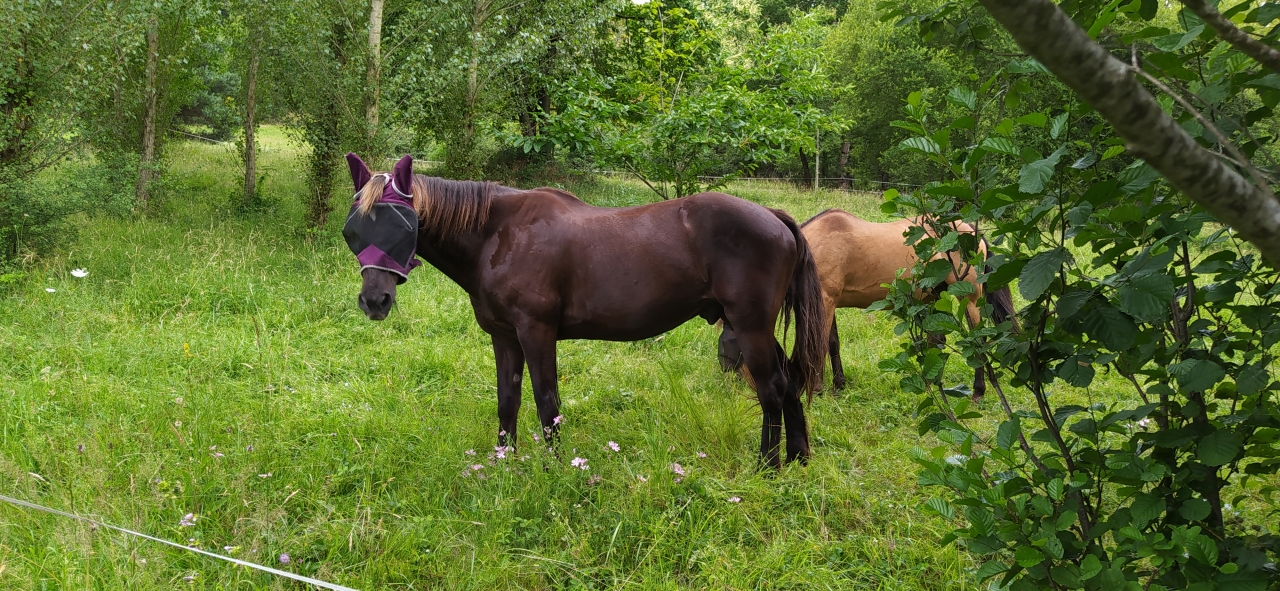 | Dire merci | Reprise du rythme farniente pour les chevaux ! Et retour ds le pré du haut ( et timing sous haute tension pour que les chevaux puissent profiter de l'herbe avant que le voisin tonde tout !!). Oracle voit l'ostéo demain soir, j'ai réussi à avancer le rdv en faisant venir une nouvelle ostéo du coin...ce sera pas du luxe ! On croise les doigts pour que ce soit juste un blocage musculaire... En attendant : ![]() ![]() ![]() Dommage sans le masque la photo aurait été chouette ! ![]() ![]() |