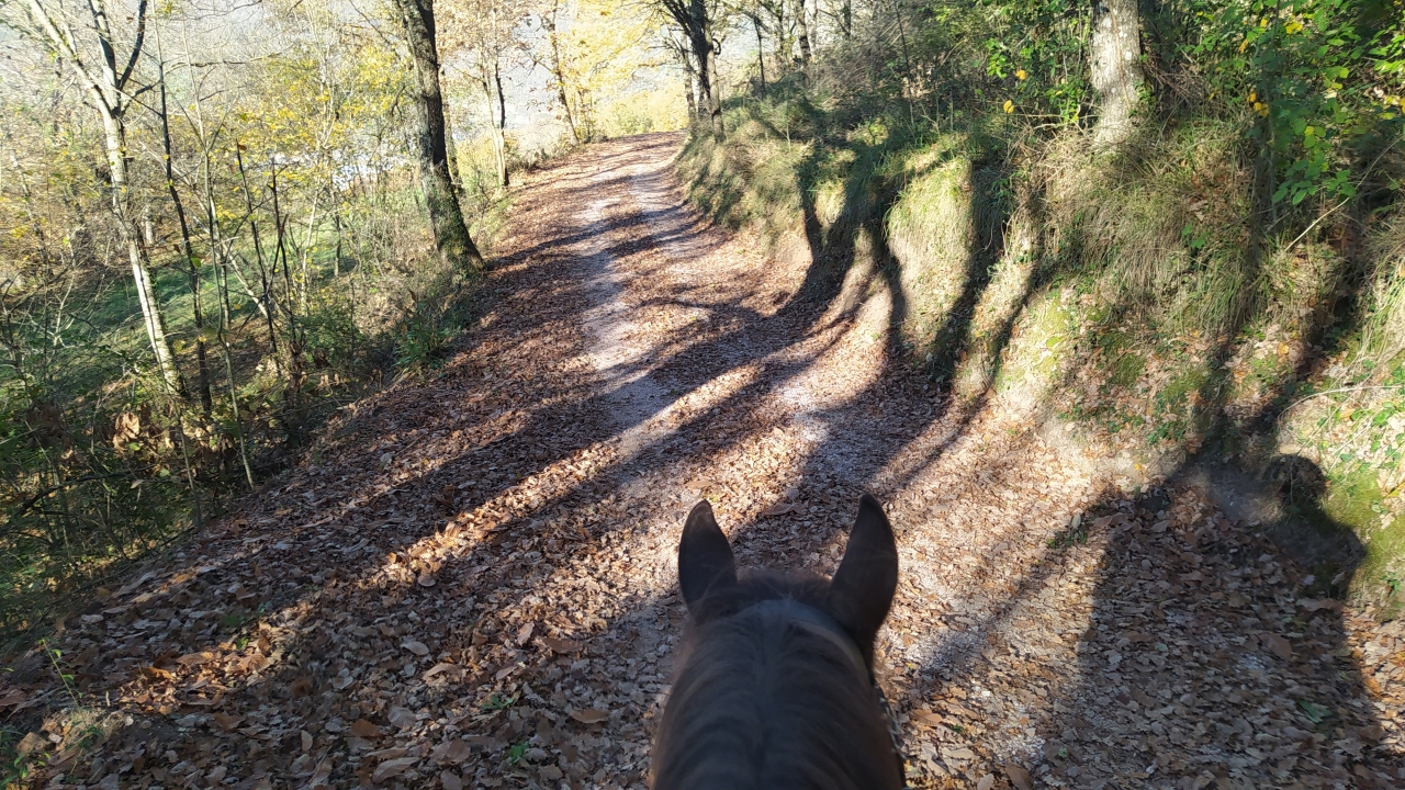 | Dire merci | Merci à toutes !!! On continue les balades confinées ds le quartier, (je suis la seule à constater qu'il fait toujours super beau pendant les confinements?!!!). L'avantage quand on monte deux chevaux c'est que EUX au moins n'ont pas l'impression de tourner en rond...quoique... Il fait un soleil d'enfer alors je décide de partir en balade avec O. Il fait tellement chaud que pendant que je le prépare je vois les gouttes de sueur perler sur lui et commencer à couler ! ![]() Du coup on part vraiment tranquillement et on vise les chemins ombragés.. Une petite photo au pansage...lui c'est pas avec la maigreur qu'il attaque l'hiver ! ![]() ![]() On fait un petit bout à pieds et je grimpe, bon clairement on est pas au top de la motivation, tour plus que connu et tout seul en plus...tout ce qu'il faut pour nous blazer un Oraclou...mais il faut quand même marcher et entretenir l'indépendance donc on s'y colle.. Au retour je surkiff le feu d'artifice des couleurs de l'automne ![]() ![]() Finito on rentre ![]() Et on broute pendant que je fais box et paddock ![]() Et pendant ce temps là mamie N fait le pied de grue devant la porte de sa chambre... ![]() |