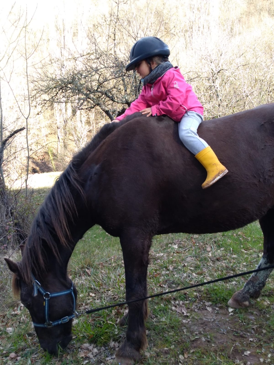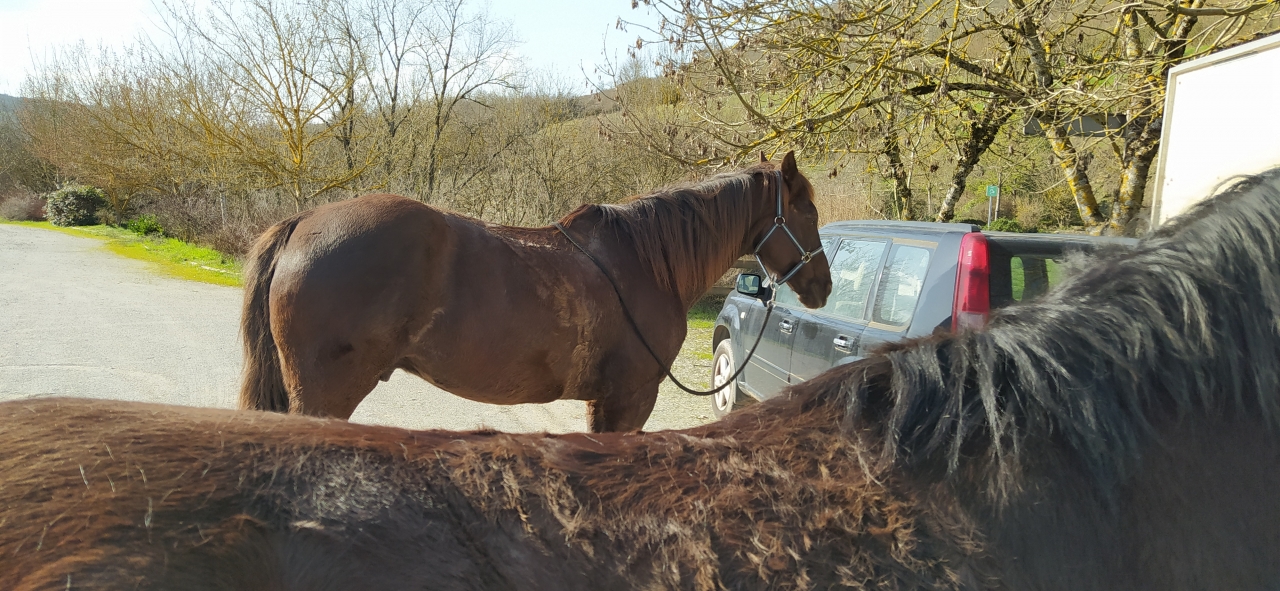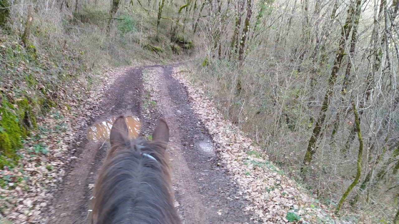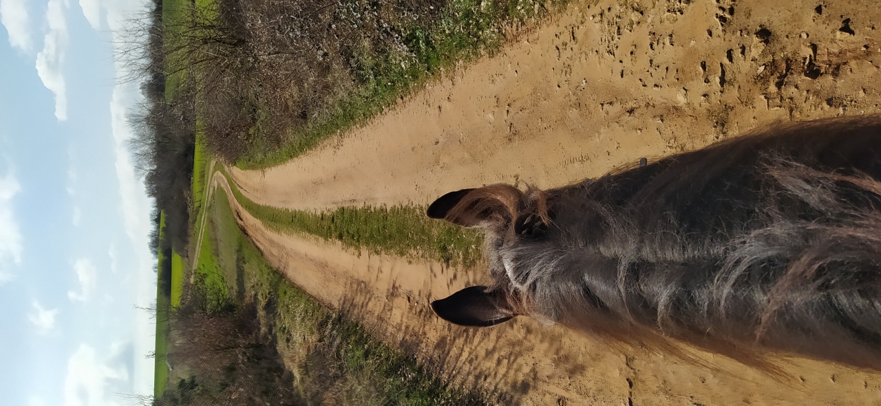 | Dire merci | Waouh c'était cool !!! On a eu du soleil aujourd'hui donc j'avais tout préparé hier en croisant les doigts et cet APM après le boulot, ma copine (cavalière de Siro) est venue me rejoindre, on a pris le van et zou direction le Cambon à 15 min de van de la maison ! (Bon sauf qu'on est parti moins tôt que prévu car O était complètement pané de boue et les feux stop du Xtrail ne fonctionnaient pas ! Le temps qu'el hombre nous change le fusible,on mets les protections, on embarque tout le monde comme des fleurs et on file !) Arrivée sur place il est déjà 15h40 (putain de faille spatio-temporelle équine...le temps passe toujours trop vite qd on kiff!)... Donc on décolle rapidement pour la boucle (que j'ai prévu assez courte heureusement !) O est en tête : il s'éclate, les oreilles droit devant, un allant parfait, il ouvre la marche c'est SON boulot ! S suit sagement et profite du paysage. Bon par contre les terrains sont pas jojo, ça glisse, ça glaise...du coup on fait 95% de pas mais on prend le temps de profiter c'est le but...au retour le chemin n'est qu'une flaque géante alors Oracle y va gaiement en arrosant tout le monde... Retour au van à 17h10...on se bouge les fesses à cause du couvre feu mais...O n'embarque pas !C'est ma faute le van était garé pile au niveau d'une flaque et on avait attaché S à l'anneau près de la porte avant et au moment où O a daigné monté S s'est dit qu'il allait faire de même donc je me suis retrouvé avec 2 chevaux qui montent en même temps à la même place un par l'avant, un par l'arrière ...Le gag ! [...] |