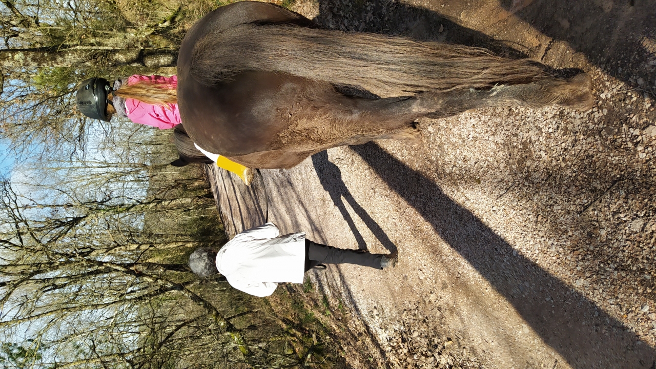 | Dire merci | Allez le récap. Tout s'est très bien passé, ma pote était ravie et moi je suis vraiment fière de l'exemplarité des chevaux ! S a été d'un calme olympien mais vraiment, ma pote le surnomme " poney magique" mais franchement y a de ça, l'alchimie passe entre les 2 et c'est un vrai bonheur, il est très apaisé ! O en tête tout le long, vraiment chouette aussi, j'ai eu un pb de godasse par contre. Comme le pareur a fait du zèle, j'en ai une qui était sûrement trop lâche, elle tournait et avançait, bref c'était n'importe quoi...du coup forcément il était pas carré carré au trot, mais avec la godasse qui se barre et se fout en traviole...et je pouvais pas faire la balade sans sinon ouille les cailloux...bref...( Vraiment le zèle c'est relou!) En tout cas ça n'a pas stoppé son entrain...après un long moment au pas, il m'a proposé le trot donc c'était le signal...on a pu trottiner régulièrement mais je voulais absolument pas forcer, car comme il était sous previcox j'ai eu peur de trop le pousser et pourtant il était vraiment demandeur...mais entre l'AI et la godasse... j'étais sur le frein sur un bout de balade, le temps de trouver un endroit convenable pour qu'il puisse faire sa longueur de galop... Il s'est régalé mais on a fait court et je suis descendue un bon km avant l'arrivée... Bref en tout cas au pas, au retour, sans la godasse il était carré et avait encore de l'allant ! Verdict demain et après demain pour les raideurs. En attendant on s'est vraiment régalés, tout le monde à bien profiter de cette superbe journée !! Message édité le 27/02/21 à 18:49 |