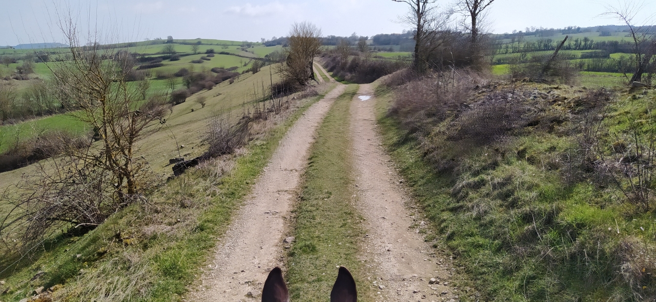 | Dire merci | Qu'est-ce que c'est beau, ce paysage vallonné Je ne connais pas du tout ta région, ça me donne envie de venir la découvrir ! "Mes chevaux, mon van, les balades..." étant dans la même situation, je comprends à 100% le mélange de satisfaction, de fierté et de joie que tu ressens ! On sort le van en moyenne tous les 15 jours pour les balades, et je suis toujours émerveillée d'avoir la chance de vivre ça, même si j'ai dû me saigner financièrement pour profiter de ce luxe. Parfois, dans les moments de galère (utilitaire ENCORE en panne, etc...), je pense à vendre ce gouffre à pognon... je pleure un coup, puis je pense à la liberté et la joie qu'il nous procure... au spectacle que nous ne pourrions plus faire tourner sans lui... et j'oublie les difficultés ! J'espère pouvoir en profiter encore longtemps ! |