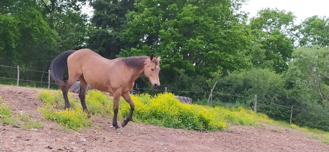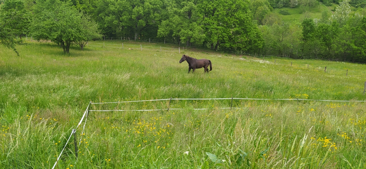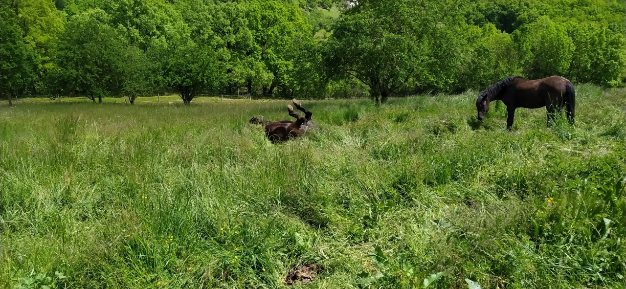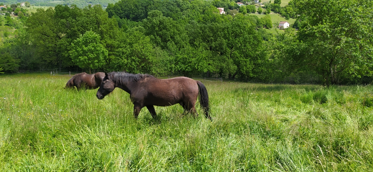 | Dire merci | irisetquiara39 merci de ton petit message. Les chevaux vont bien, ils profitent de l'herbe et de la rotation des parcelles... Siro a mangé au dessus d'une fourmilière il y a quelques jours et du coup il s'est fait copieusement attaqué, je l'ai récupéré du pré histerique et avec la partie gauche de la face complètement gonflée... c'était assez impressionnant... heureusement après une bonne douche froide bien tonique ( qu'il a détesté!) Tout a dégonflé en quelques heures ! Sinon ras juste des petites balades ds le quartier seule ou à deux. Spoiler