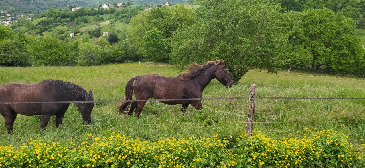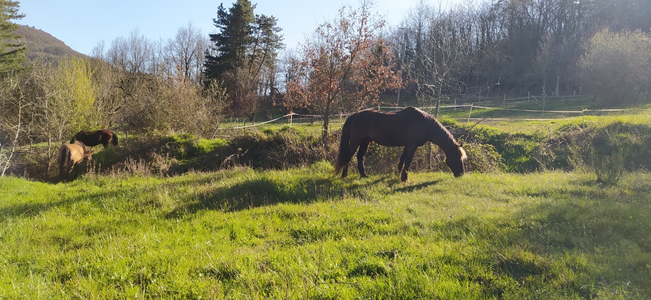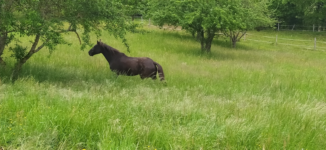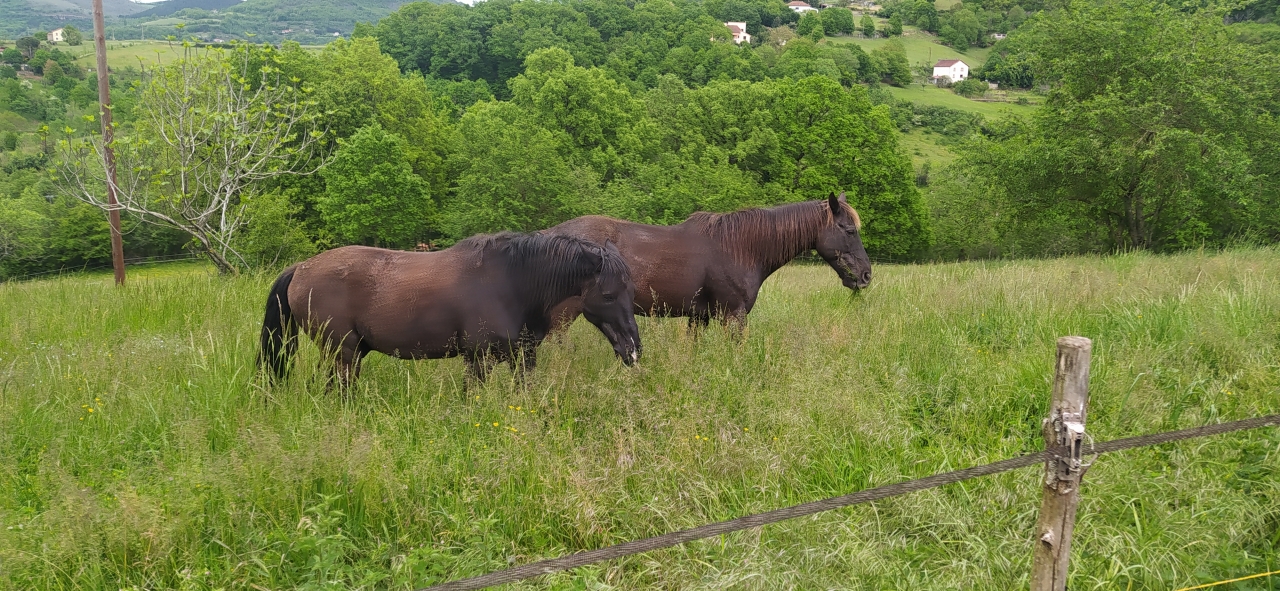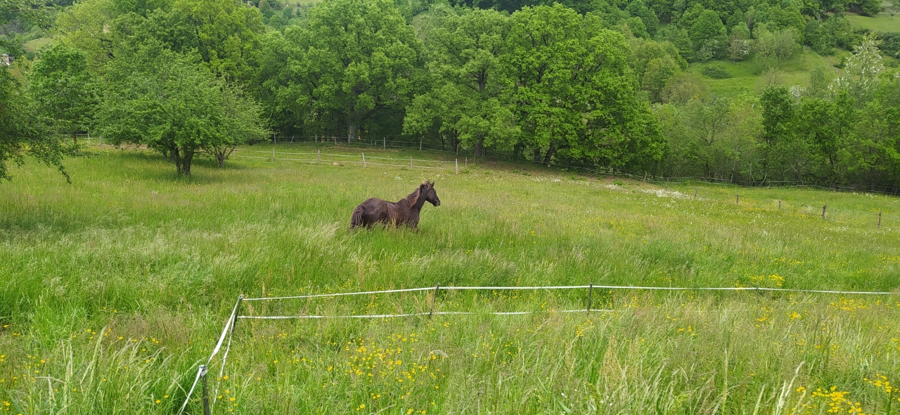 | Dire merci | irisetquiara39 merci de ton petit message. Les chevaux vont bien, ils profitent de l'herbe et de la rotation des parcelles... Siro a mangé au dessus d'une fourmilière il y a quelques jours et du coup il s'est fait copieusement attaqué, je l'ai récupéré du pré histerique et avec la partie gauche de la face complètement gonflée... c'était assez impressionnant... heureusement après une bonne douche froide bien tonique ( qu'il a détesté!) Tout a dégonflé en quelques heures ! Sinon ras juste des petites balades ds le quartier seule ou à deux. Spoiler
